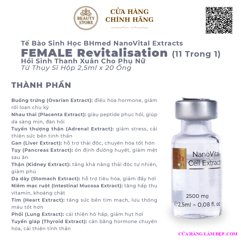 Địa chỉ mua Tế Bào Sinh Học Bhmed NanoVital Extracts FEMALE Revitalisation (11 Trong 1) Hồi Sinh Thanh Xuân Cho Phụ Nữ Từ Thụy Sĩ Hộp 2,5ml x 20 Ống chính hãng tại TP Hồ Chí Minh :