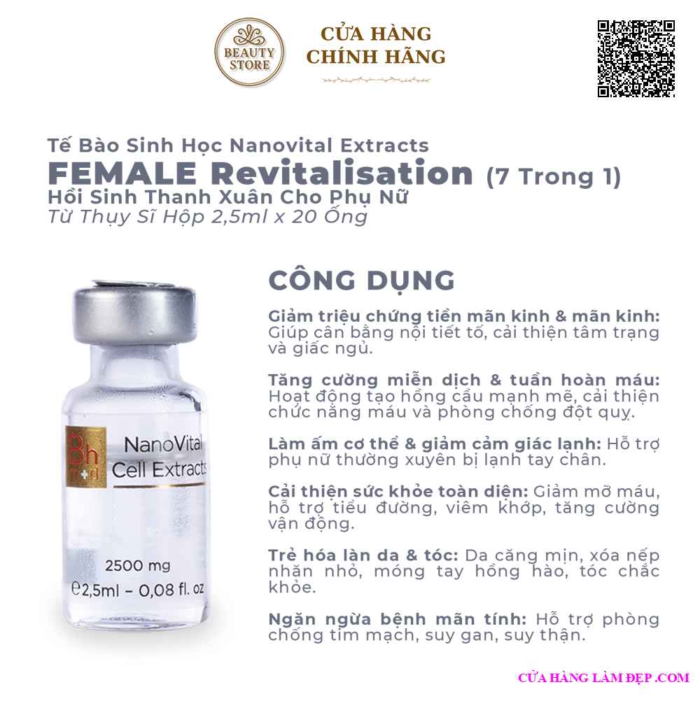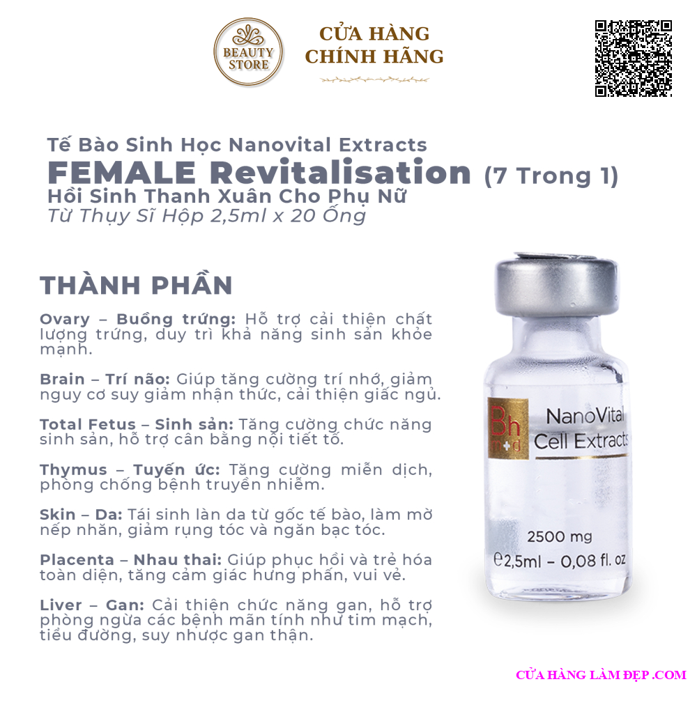 Địa chỉ mua Tế Bào Sinh Học Bhmed Nanovital Extracts Female Revitalisation (7 Trong 1) Hồi Sinh Thanh Xuân Cho Phụ Nữ Từ Thụy Sĩ Hộp 2,5ml x 20 Ống chính hãng tại TP Hồ Chí Minh :