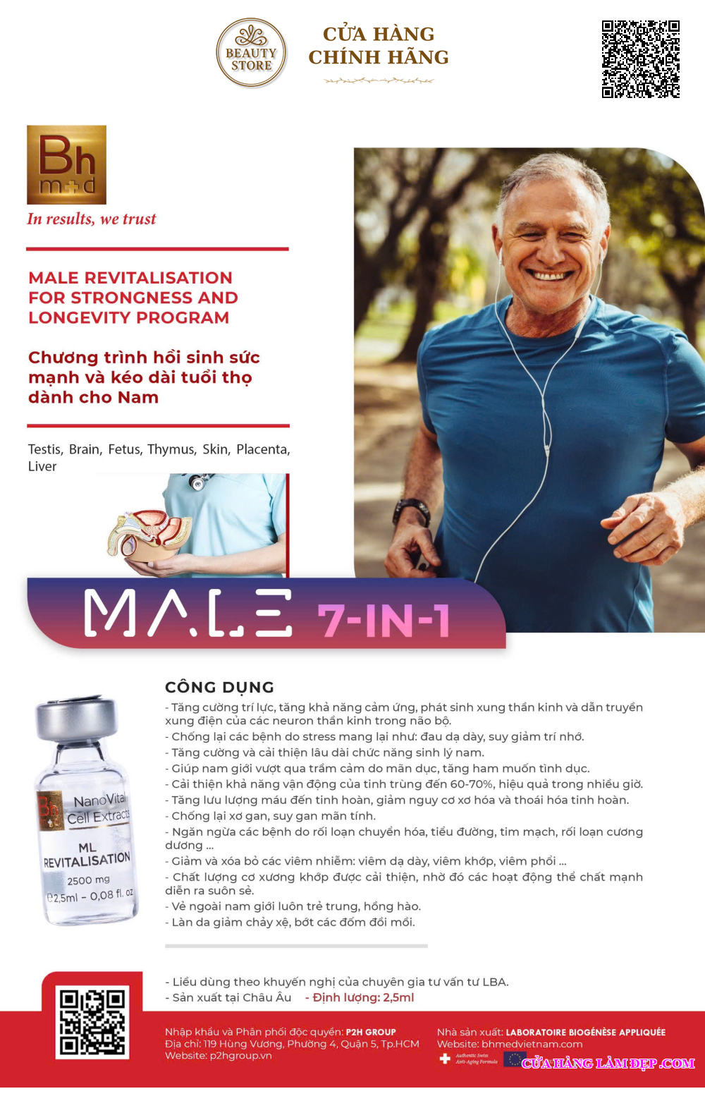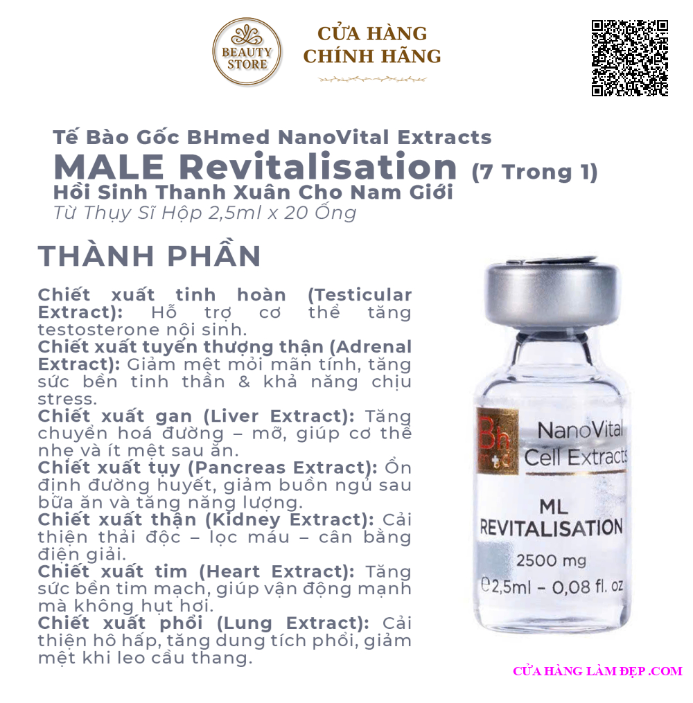 Địa chỉ mua Tế Bào Sinh Học Bhmed NanoVital Extracts Male Revitalisation (7 Trong 1) Hồi Sinh Thanh Xuân Cho Nam Giới Từ Thụy Sĩ Hộp 2,5ml x 20 Ống chính hãng tại TP Hồ Chí Minh :