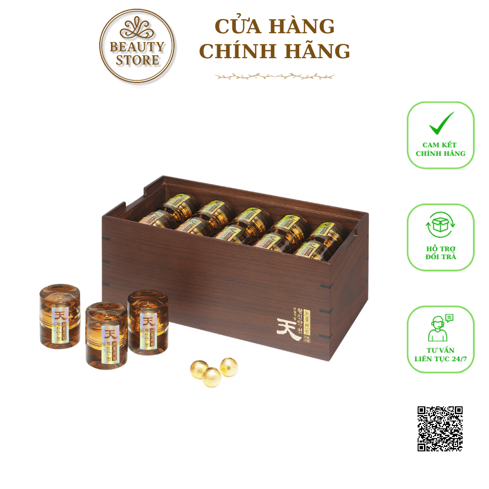 Viên thiên sâm linh đan Hwangjindan Cheon Noble Line là sản phẩm cao cấp tốt nhất, với thành phần hồng sâm ( thiên sâm top 0.5% cao nhất) 38,33%, nhung hươu New Zealand 0,75mg/1 viên, vàng lá 8,5%, rễ bạch chỉ, sữa ong chúa, cây xô thơm tự nhiên. Sản phẩm cao cấp nhất dành cho khách hàng muốn tìm kiếm một sản phẩm cao cấp tốt cho sức khỏe.