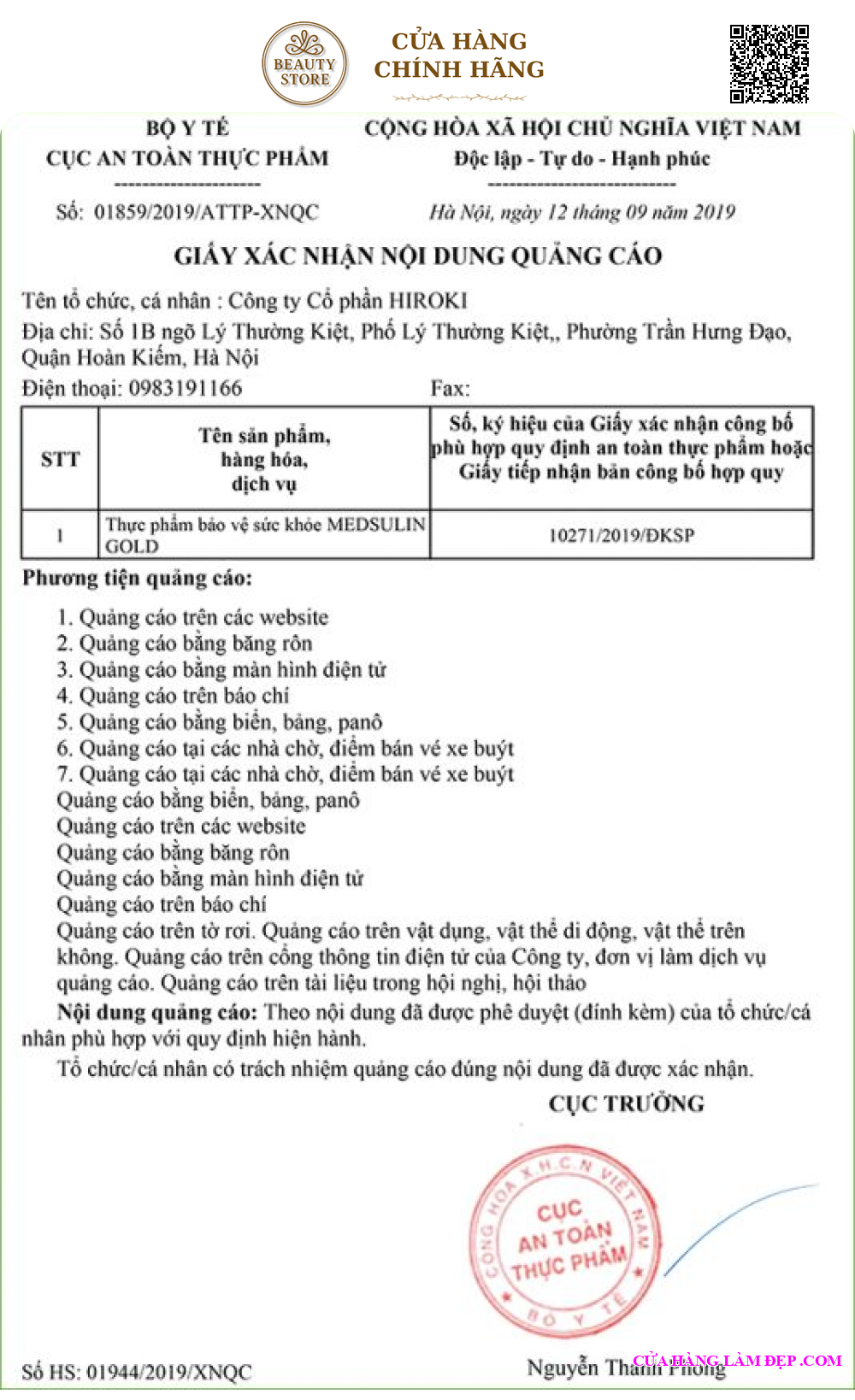 . Sản phẩm chính hãng 100%, hàng hoá có nguồn gốc xuất xứ rõ ràng, đầy đủ hóa đơn VAT, tem nhãn mác bill nhập, giấy công bố sản phẩm, giấy phép quảng cáo, giấy chứng nhận phân phối sản phẩm…