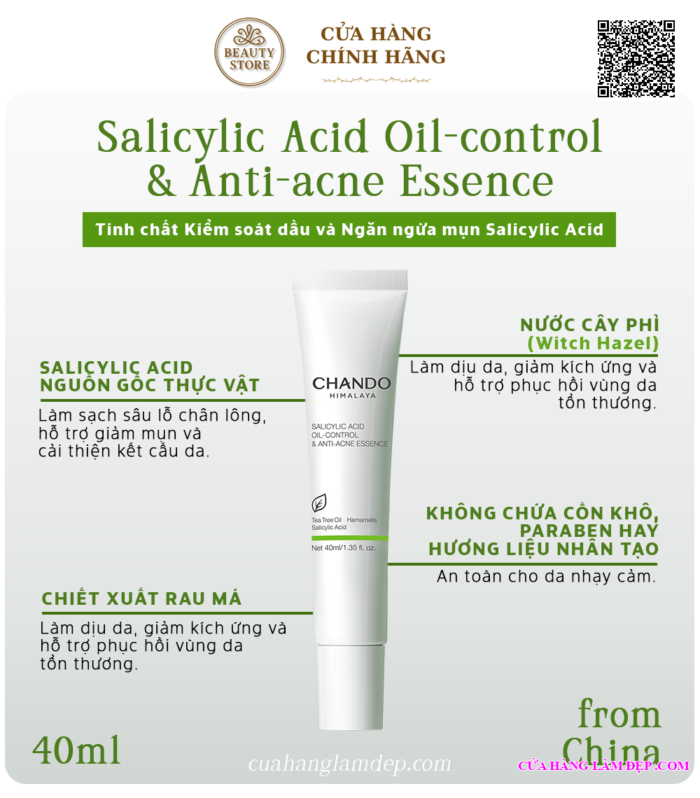 Tại hệ thống Cửa Hàng Làm Đẹp, sản phẩm Tinh Chất CHANDO Himalaya Salicylic Acid Oil-control & Anti-acne Essence Kiểm Soát Dầu Giảm Mụn Salicylic Acid 40ml Từ Trung Quốc có giá 520.000 VNĐ