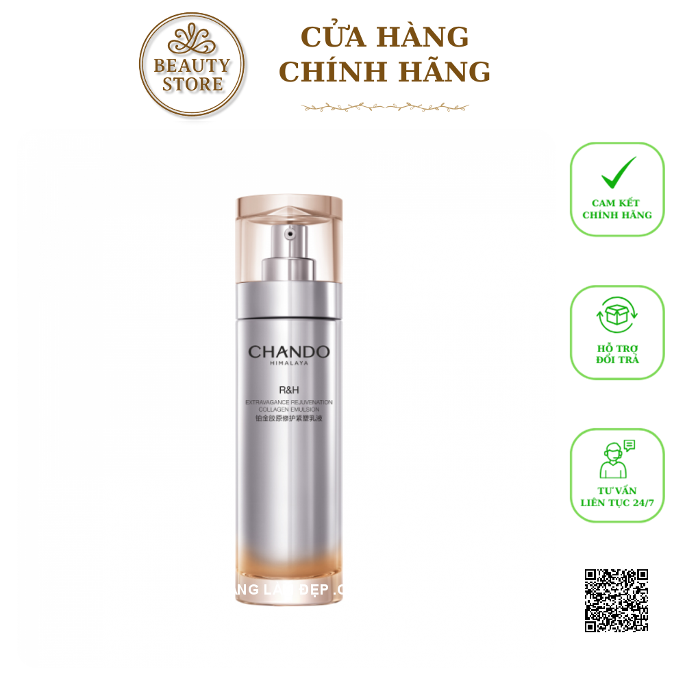 Chando Himalaya Extravagance Rejuvenation Collagen Emulsion giúp kích thích sản sinh collagen ở lớp hạ bì, làm đầy các nếp nhăn sâu, củng cố các tầng da thêm săn chắc, cải thiện dấu hiệu lão hoá toàn diện. Công thức chuyên biệt tái tạo da tổn thương sau khi sử dụng công nghệ cao. Phục hồi trạng thái da khoẻ mạnh, tăng cường sức đề kháng vượt trội, trả lại làn da tươi trẻ, căng bóng, sáng mịn rạng rỡ.