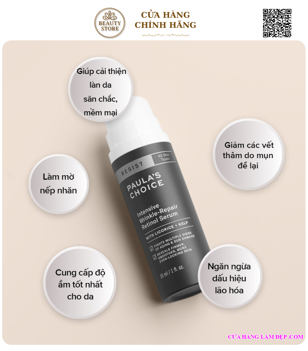 Tại hệ thống Cửa hàng làm đẹp, Tinh Chất Chống Nhăn Chuyên Sâu Paula’s Choice Resist Intensive Wrinkle-Repair Retinol Serum có giá: 1.305.000 VND