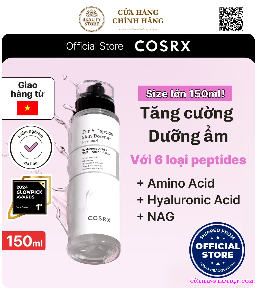 Tại hệ thống Cửa Hàng Làm Đẹp, sản phẩm Tinh Chất COSRX The 6 Peptide Skin Booster Tăng Cường Cải Thiện Toàn Diện 150ml Từ Hàn Quốc có giá 690.000 VNĐ