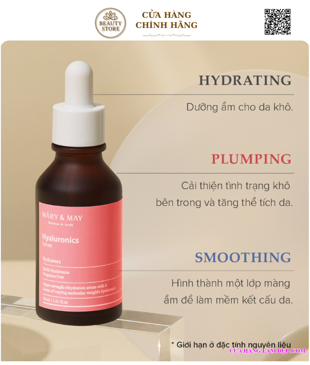 Tại Hệ Thống Cửa Hàng Làm Đẹp Sản Phẩm Tinh Chất Dưỡng Ẩm Mary&May Hyaluronics Serum 30ml Hàn Quốc Có Giá: 400.000 VNĐ