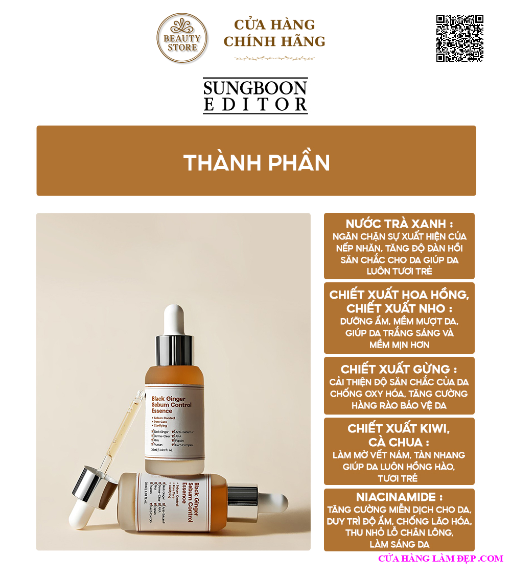 - Bạn có thể tìm mua Tinh Chất Dưỡng Da Gừng Sungboon Editor Black Ginger Sebum Control Essence qua website: cuahanglamdep.com