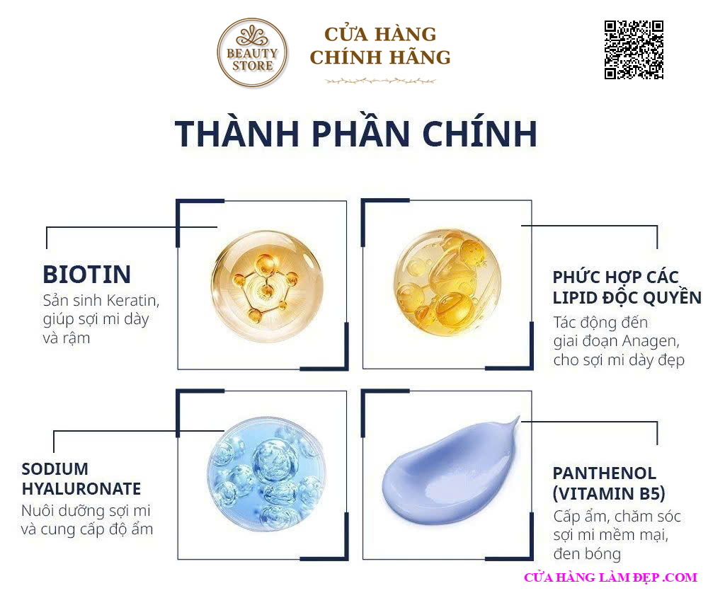 - Hợp chất Lipid độc quyền: Nhắm mục tiêu giai đoạn anagen của chu kỳ lông mi để mang lại làn mi dày hơn và trông đầy đặn hơn.