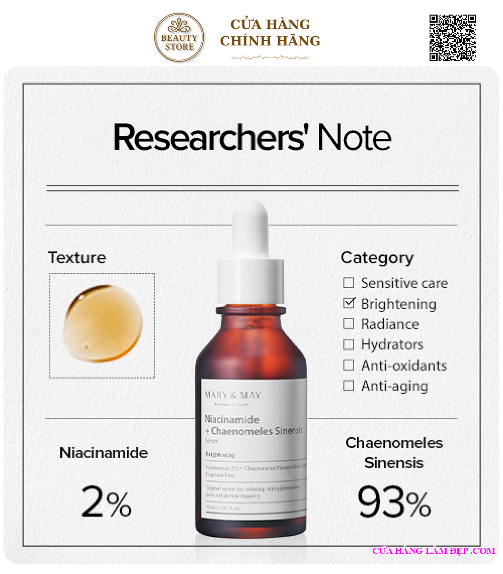 Tại Hệ Thống Cửa Hàng Làm Đẹp Sản Phẩm Tinh Chất Dưỡng Sáng Da Mary&May Niacinamide + Chaenomeles Sinensis Serum 30ml Hàn Quốc Có Giá: 400.000 VNĐ