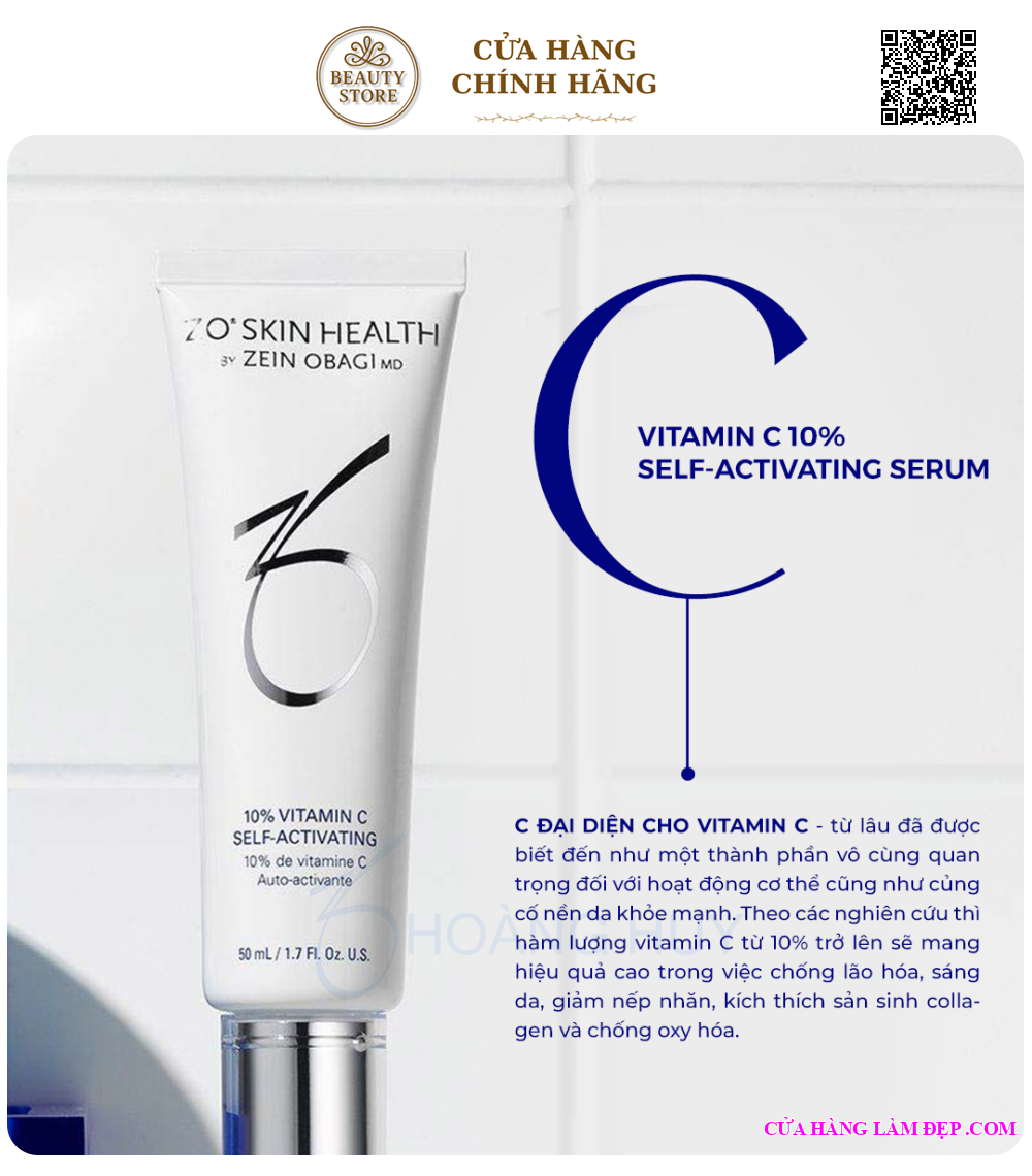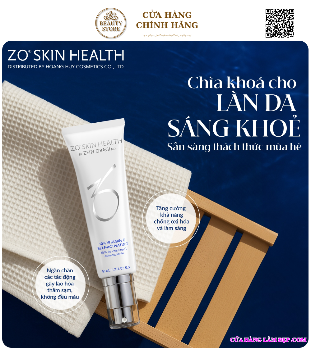 - Vitamin C là thành phần thiết yếu trong chế độ dinh dưỡng hàng ngày và cũng là hoạt chất vàng trong làng chăm sóc da. Vì vậy, Vitamin C được ứng dụng vào các mỹ phẩm chăm sóc da hiện nay. Tinh Chất Dưỡng Trắng Da ZO Skin Health 10% Vitamin C Self-Activating đến từ thương hiệu Zo Skin Health. Sản phẩm có công dụng điều trị và chăm sóc da hư tổn, lão hóa và các vấn đề ảnh hưởng đến sắc đẹp của người tiêu dùng