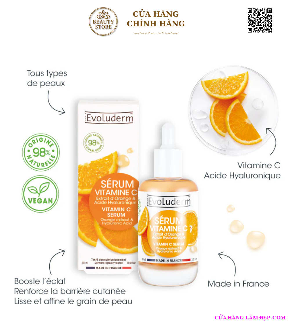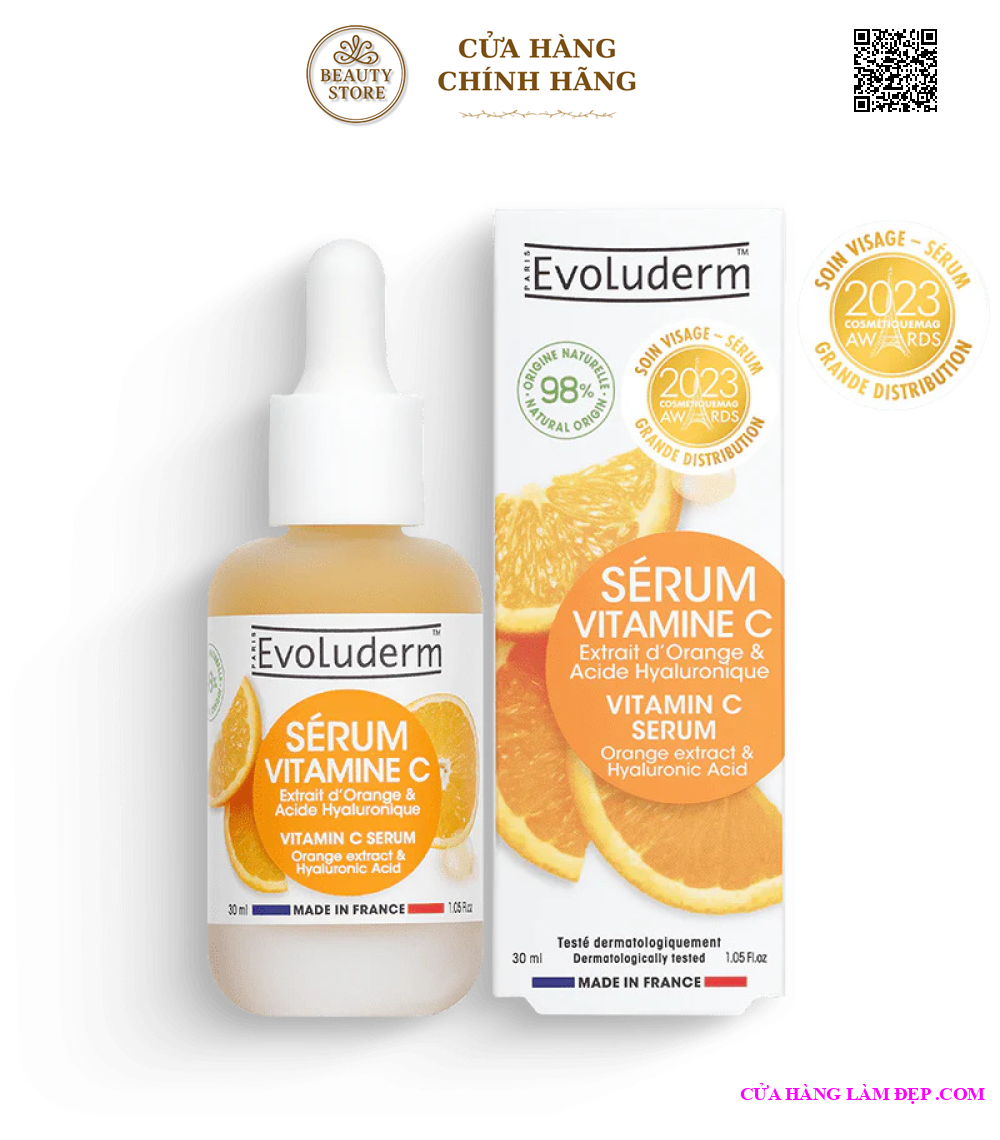 Tại hệ thống Cửa Hàng Làm Đẹp, sản phẩm Evoluderm Serum Vitamin C Tinh Chất Dưỡng Trắng Sáng Da 30ml có giá 550.000 VNĐ