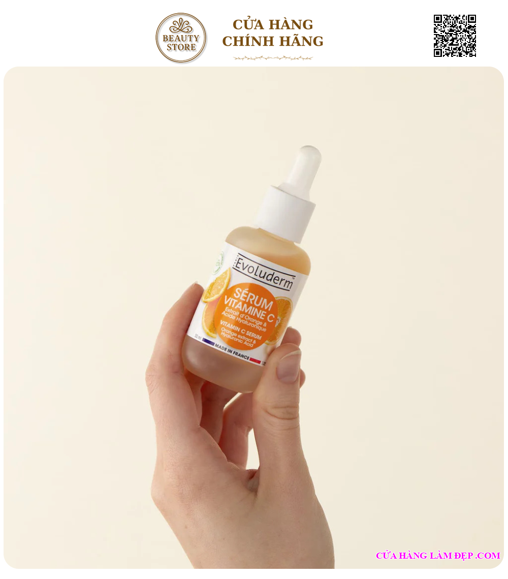 Tinh chất Evoluderm Vitamin C Serum là sản phẩm chăm sóc da nổi bật đến từ thương hiệu mỹ phẩm Pháp Evoluderm, được thiết kế chuyên biệt để dưỡng trắng, làm sáng da và cải thiện sắc tố. Với công thức chứa Vitamin C tinh khiết kết hợp các hoạt chất dưỡng da, serum giúp làm đều màu da, giảm thâm nám và mang lại làn da rạng rỡ, tươi sáng chỉ sau vài tuần sử dụng.