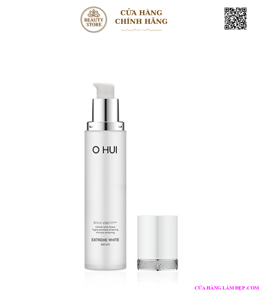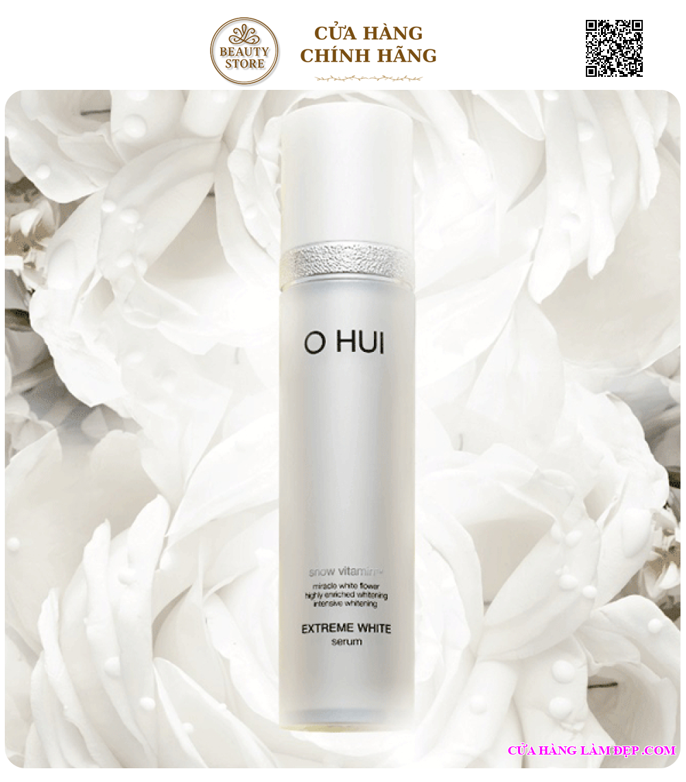 - Tinh Chất Extreme White Serum Ohui có tính năng dưỡng trắng tập trung, chứa lượng snow vitamin dễ thẩm thấu vào trong da, giúp làm trắng da mà không gây kích ứng, cải thiện da tối màu trở nên sáng trong. Nói thêm 1 chút về thành phần snow vitamin này, thì đây là vitamin dưỡng trắng cô đặc tinh khiết của Ohui dành riêng cho dòng Ohui Extreme White, nuôi dưỡng da sáng từ bên trong.