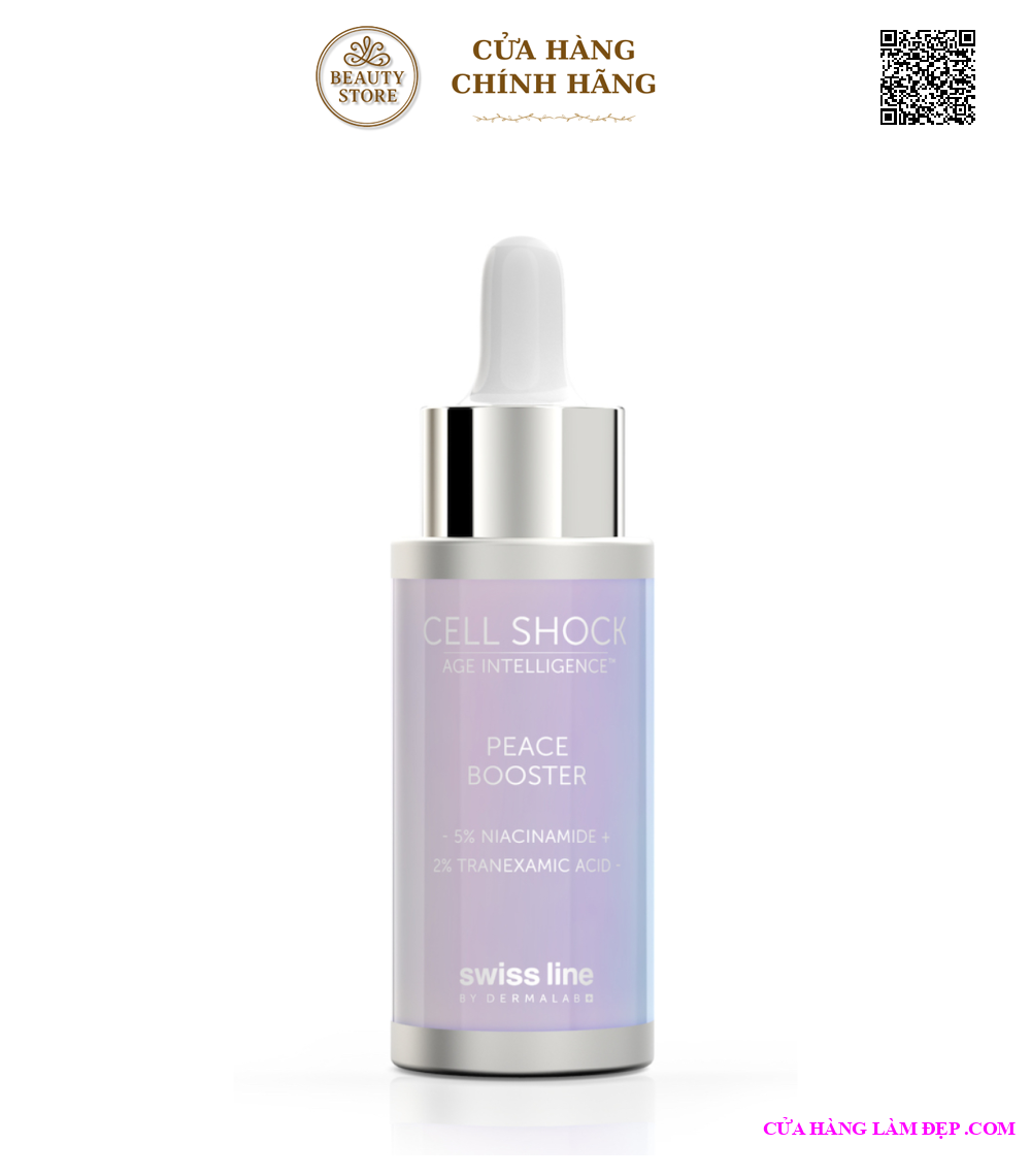 Tinh Chất Giảm Kích Ứng Làm Dịu Da Swissline Cell Shock Age Intelligence Peace Booster kết hợp 2 thành phần “vàng” trong làng dưỡng da là niacinamide và tranexamic acid. Sẽ là giải pháp hữu hiệu cho những làn da đang bị tổn thương. Không chỉ ngay lập tức làm dịu đi tình trạng kích ứng, mẩn đỏ,…siêu phẩm này còn phục hồi nhanh chóng hàng rào bảo vệ da. Cung cấp dưỡng chất cần thiết. Giúp da luôn trong trạng thái khỏe khoắn, rạng ngời.