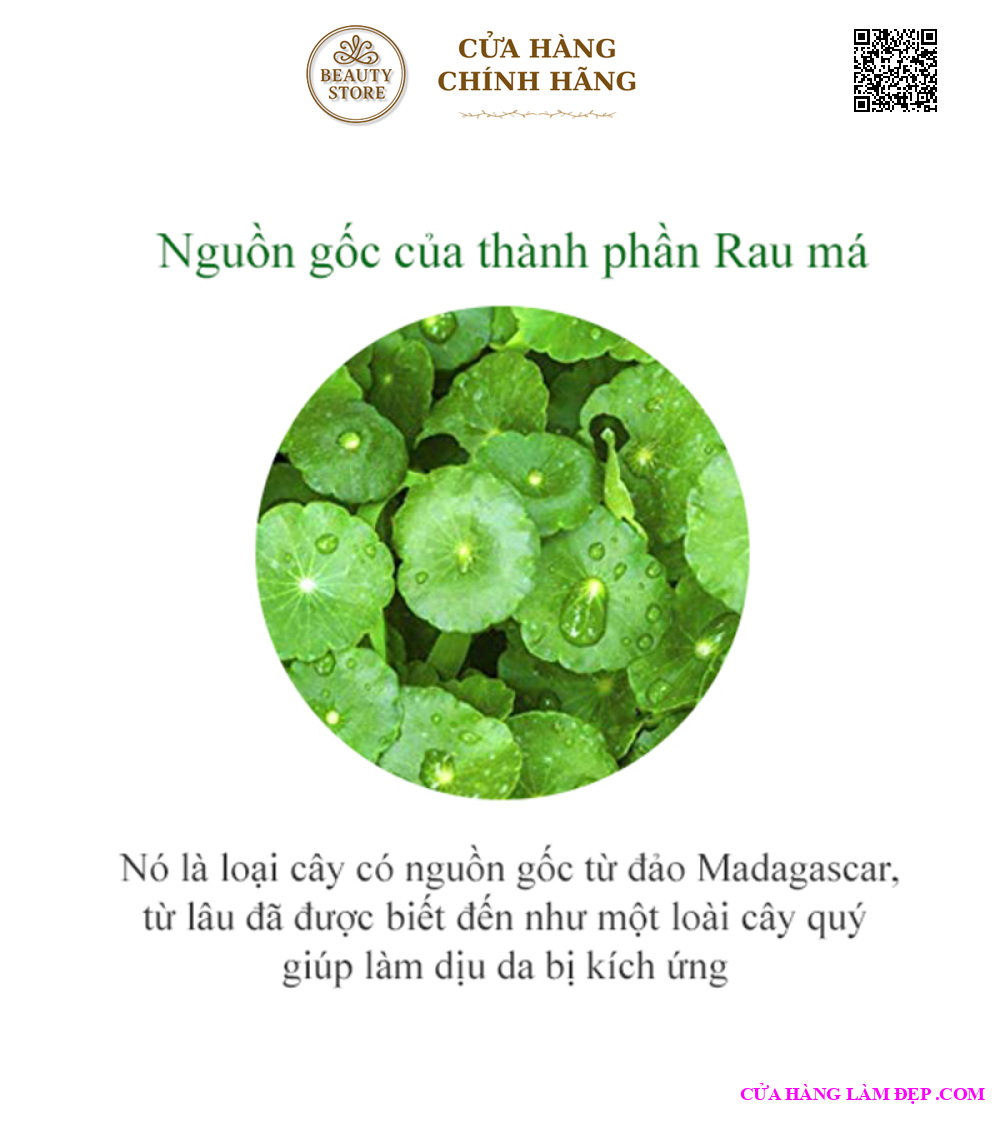 - Chiết xuất 90% rau má có tác dụng làm dịu da, kháng viêm, kháng khuẩn và cấp ẩm sâu cho da.