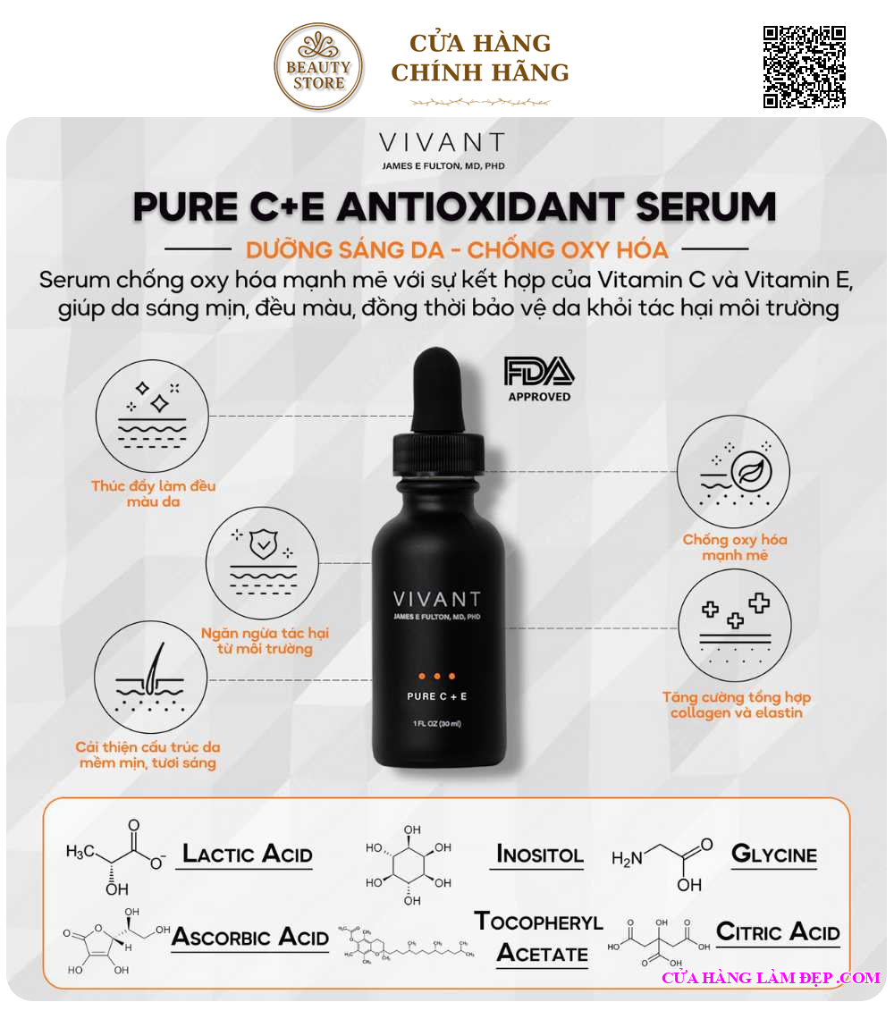 Thành Phần Tinh Chất Làm Sáng Da Và Ngăn Ngừa Dấu Hiệu Lão Hóa Vivant Skincare Pure C+E: