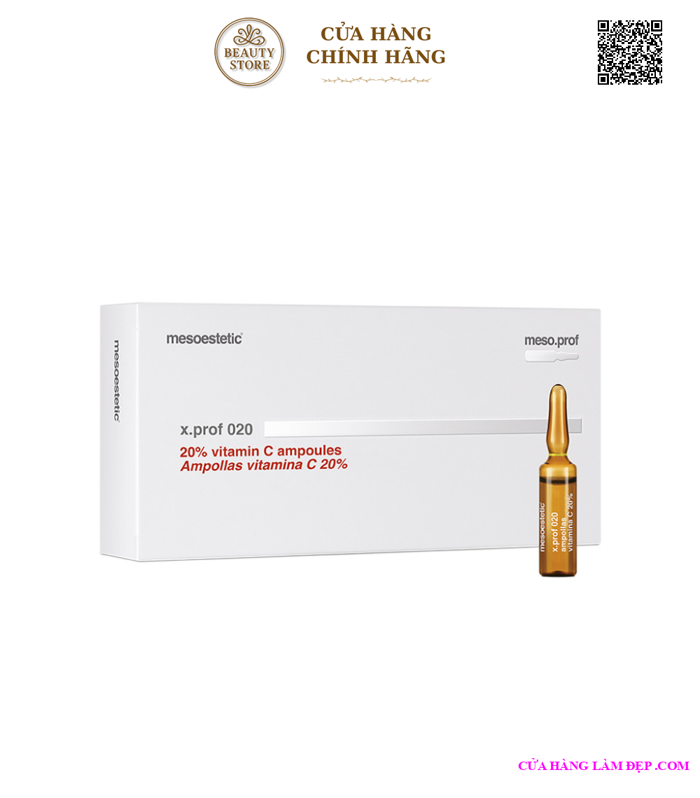 Tinh Chất Làm Trắng Da Mesoestetic X.Prof 020 20% Vitamin C Ampoules được bào chế bằng công nghệ tiên tiến của Mesoestetic. Chứa nguồn vitamin C dồi dào, kết hợp cùng vitamin A, E. Giúp loại bỏ hoàn toàn các vết nám, thâm sạm, tàn nhang, đốm nâu trên da. Đồng thời kích thích tổng hợp collagen, ngăn ngừa sự xuất hiện các dấu hiệu lão hóa da, đồng thời hỗ trợ điều trị giảm sẹo lõm, tái tạo da sau quá trình bị mụn và giúp bảo vệ làn da tránh khỏi tác hại từ tia cực tím.