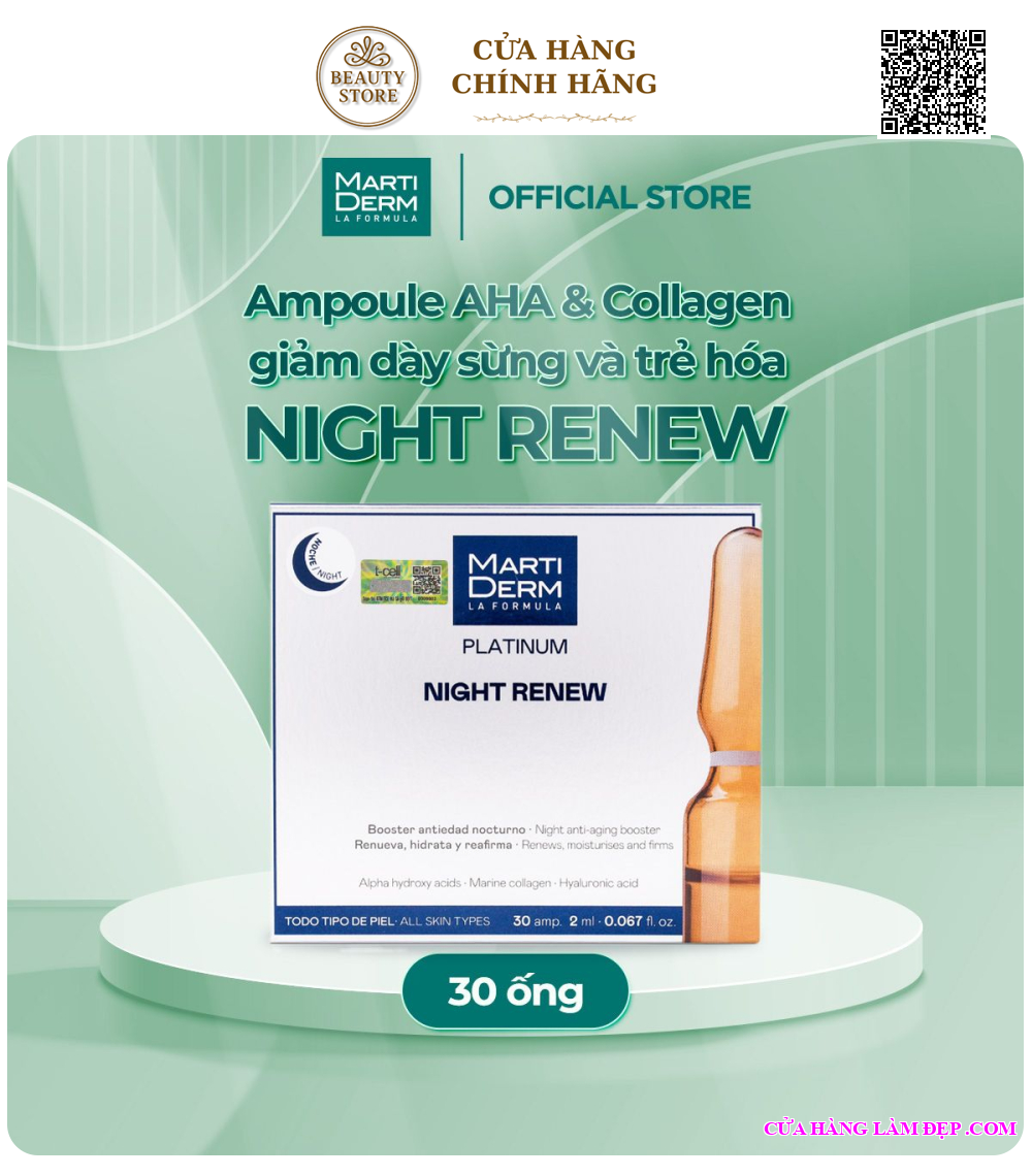 Tại Hệ Thống Cửa Hàng Làm Đẹp, Sản Phẩm Tinh Chất Ampoule Platinum Night Renew MartiDerm Hỗ Trợ Ngừa Lão Hóa & Tái Tạo Da Ban Đêm Của Tây Ban Nha 30 Ống có giá: 2.700.000 VNĐ