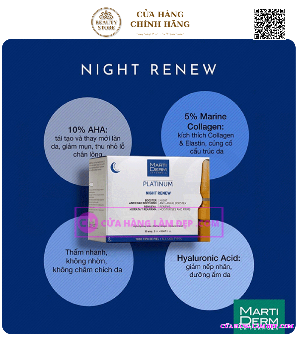 - Tại HCM bạn có thể tìm và mua Sản Phẩm Ampoule Platinum Night Renew MartiDerm qua website: cuahanglamdep.com