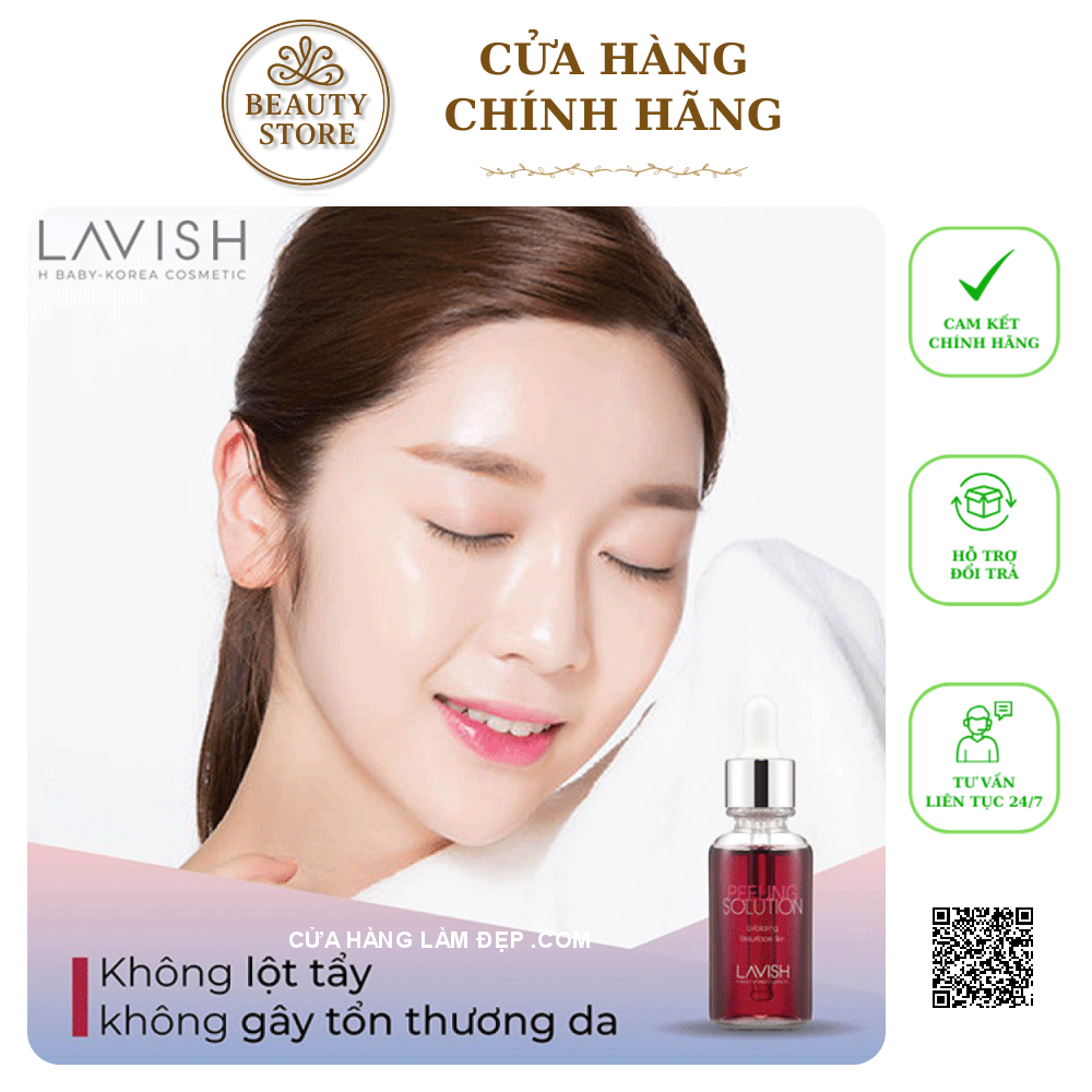 - Tinh Chất Men Trái Cây Peeling Solution Lavish H Baby với những ưu điểm: Dễ dàng sử dụng, không cần đi spa, không gây bong tróc - dưỡng da và trang điểm bình thường ngay sau khi peel.