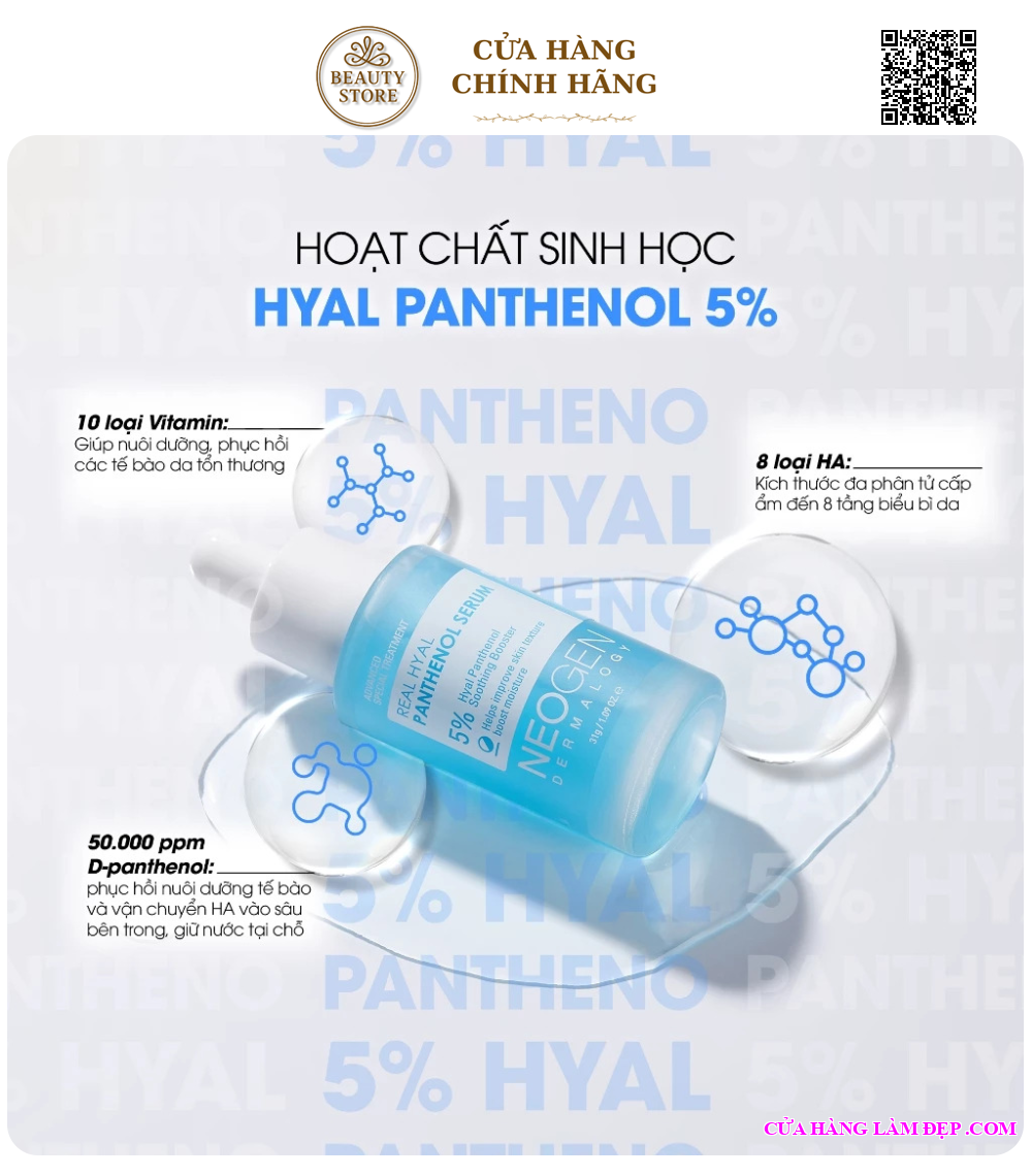 Tại hệ thống Cửa Hàng Làm Đẹp, sản phẩm Neogen Dermalogy Real Hyal Panthenol 5% Serum Cấp Ẩm Phục Hồi Da 3 Tác Động 32g từ Hàn Quốc có giá 690.000 VNĐ