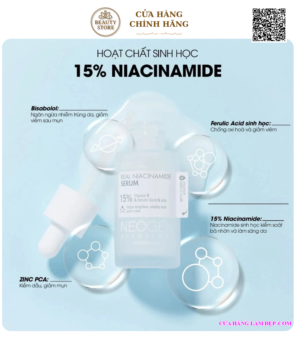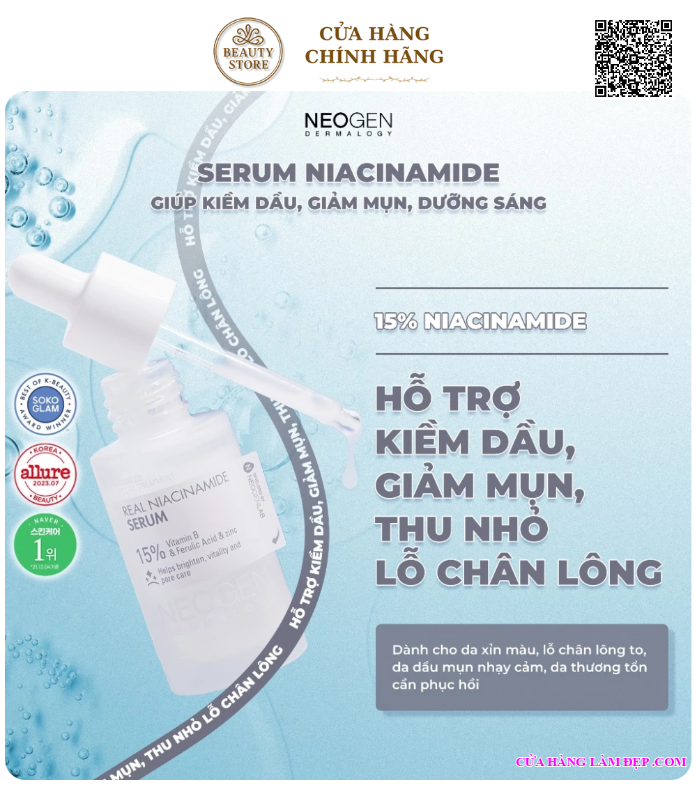 TInh Chất Neogen Dermalogy Real Niacinamide Firming Serum 15% Niacinamide Sinh Học Kiềm Dầu Giảm Mụn Dưỡng Sáng Da 30ml từ Hàn Quốc được khách hàng của Hệ Thống Cửa Hàng Làm Đẹp đánh giá cao.