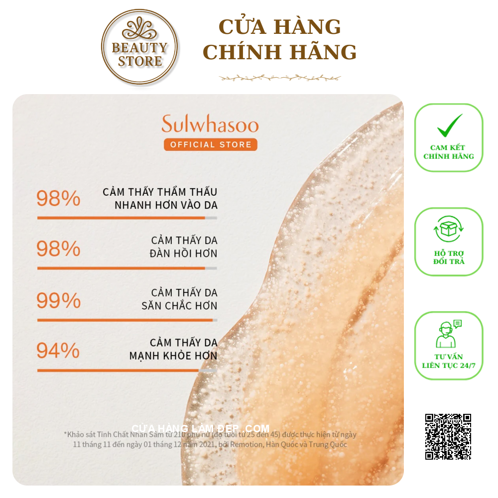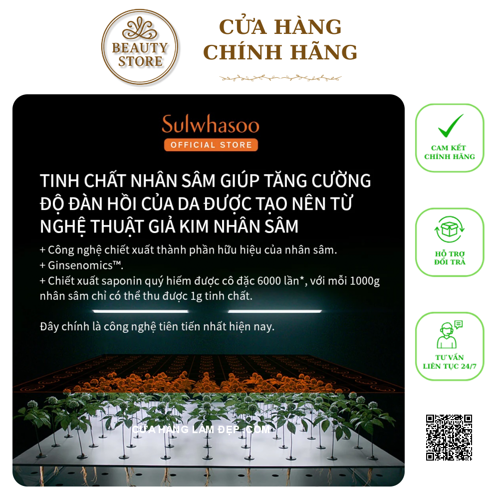 Nghiên cứu chưa từng có trên thế giới về nhân sâm: Từ năm 1960, hơn 50 năm qua, Sulwhasoo đã nghiên cứu chuyên sâu về nhân sâm như một sản phẩm làm đẹp. Những nhà khoa học và chuyên gia về nhân sâm làm việc tại Trung tâm Khoa học & Di sản Sulwhasoo để đưa ra giải pháp tối ưu nhất cho làn da khỏe mạnh.