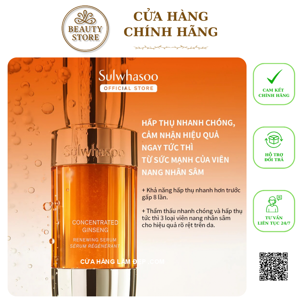 Tại hệ thống Cửa hàng làm đẹp, Tinh Chất Nhân Sâm Cải Thiện Nếp Nhăn, Săn Chắc Da Sulwhasoo Concentrated Ginseng Renewing Serum EX 30ml có giá: 3.100.000 VND