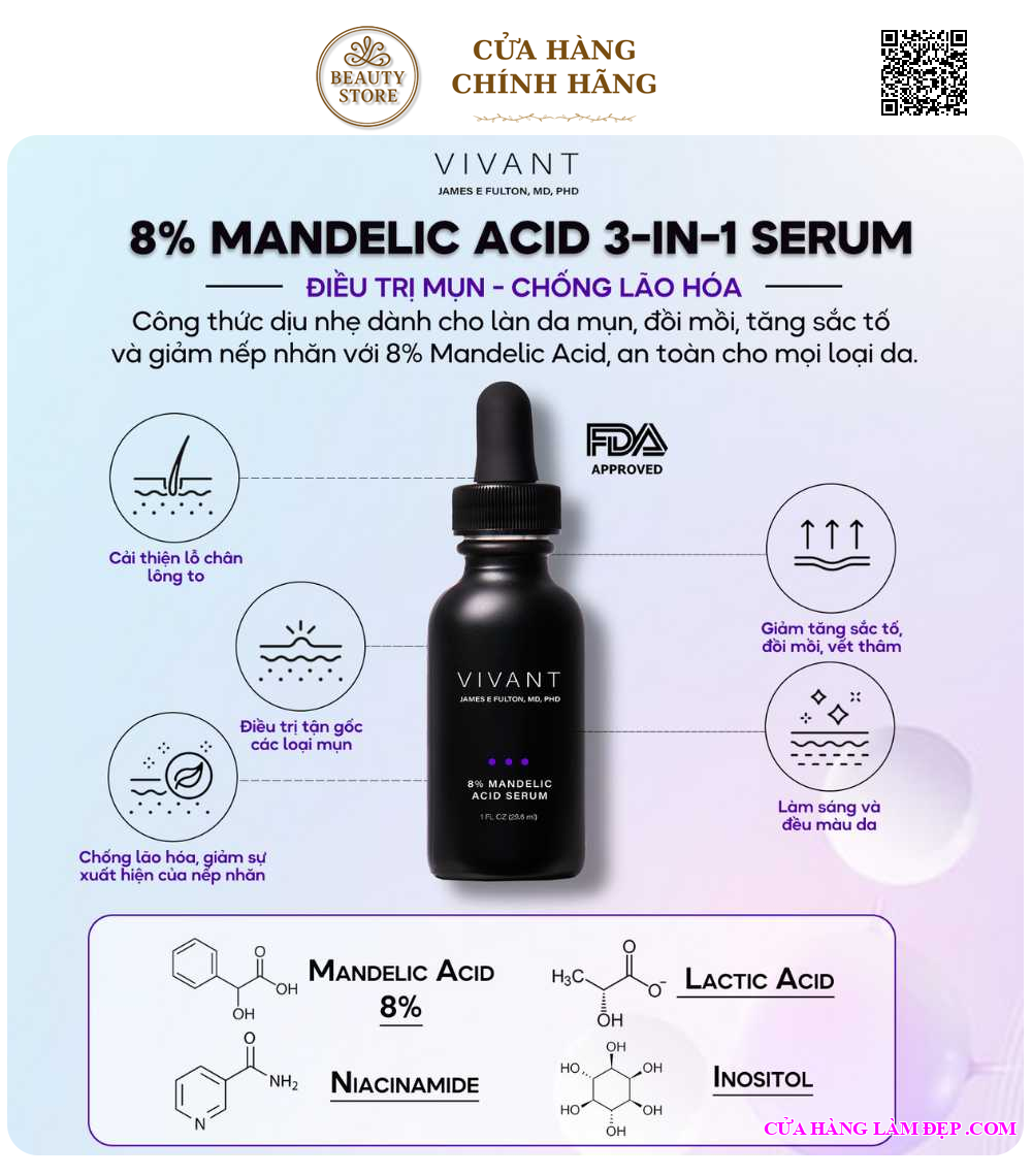 Địa chỉ mua Tinh chất sáng da đều màu 3-in-1 Vivant Skincare 8% Mandelic Acid Serum 30ml chính hãng tại Hà Nội :