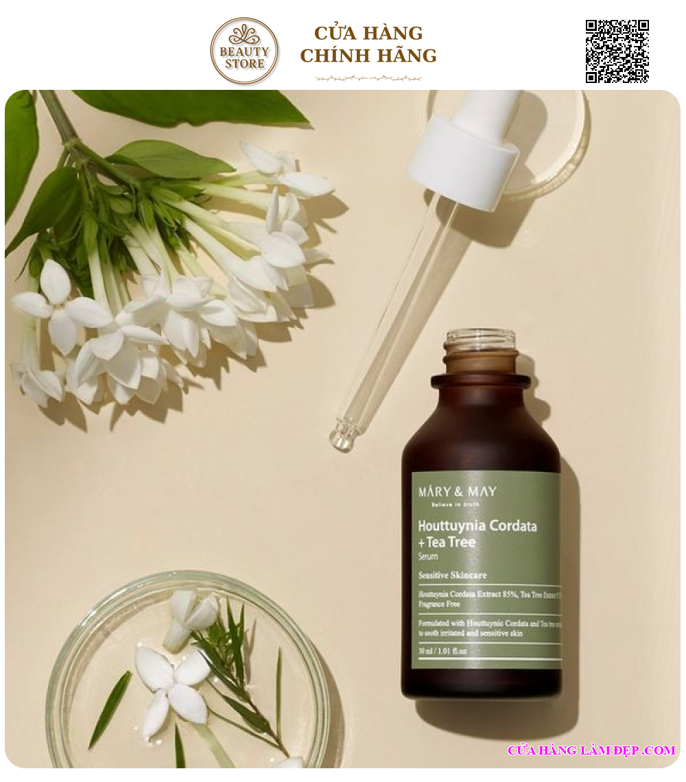 Tinh chất Mary&May Houttuynia Cordata + Tea Tree Serum là một giải pháp chăm sóc da chuyên sâu đến từ thương hiệu mỹ phẩm Hàn Quốc Mary&May, nổi tiếng với triết lý "sạch" (clean beauty) và tập trung vào các thành phần hoạt tính hiệu quả, an toàn. Sản phẩm này được bào chế đặc biệt để trở thành cứu tinh cho làn da nhạy cảm, dễ bị kích ứng, viêm nhiễm và có xu hướng nổi mụn, mang lại sự cân bằng và vẻ rạng rỡ khỏe mạnh cho làn da.