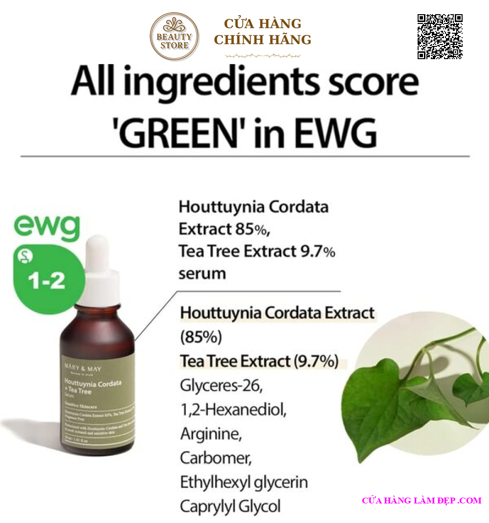 2. Thành Phần Tinh Chất Se Khít Lỗ Chân Lông Mary&May Houttuynia Cordata + Tea Tree Serum Hàn Quốc 30ml