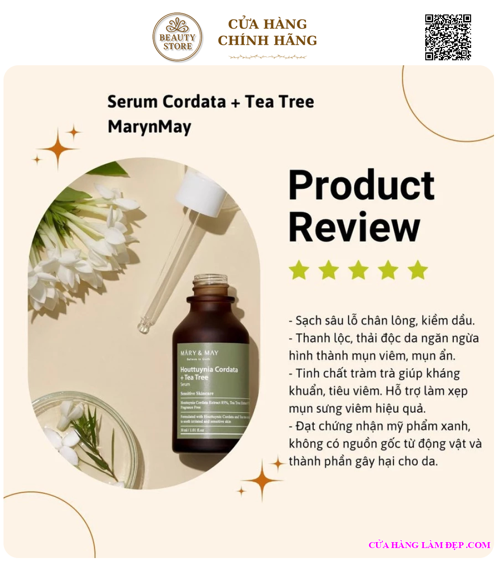 Tinh Chất Se Khít Lỗ Chân Lông Mary&May Houttuynia Cordata + Tea Tree Serum Hàn Quốc 30ml được khách hàng của Hệ Thống Cửa Hàng Làm Đẹp đánh giá cao. Bạn có thể xem thêm nội dung đánh giá dưới phần bình luận