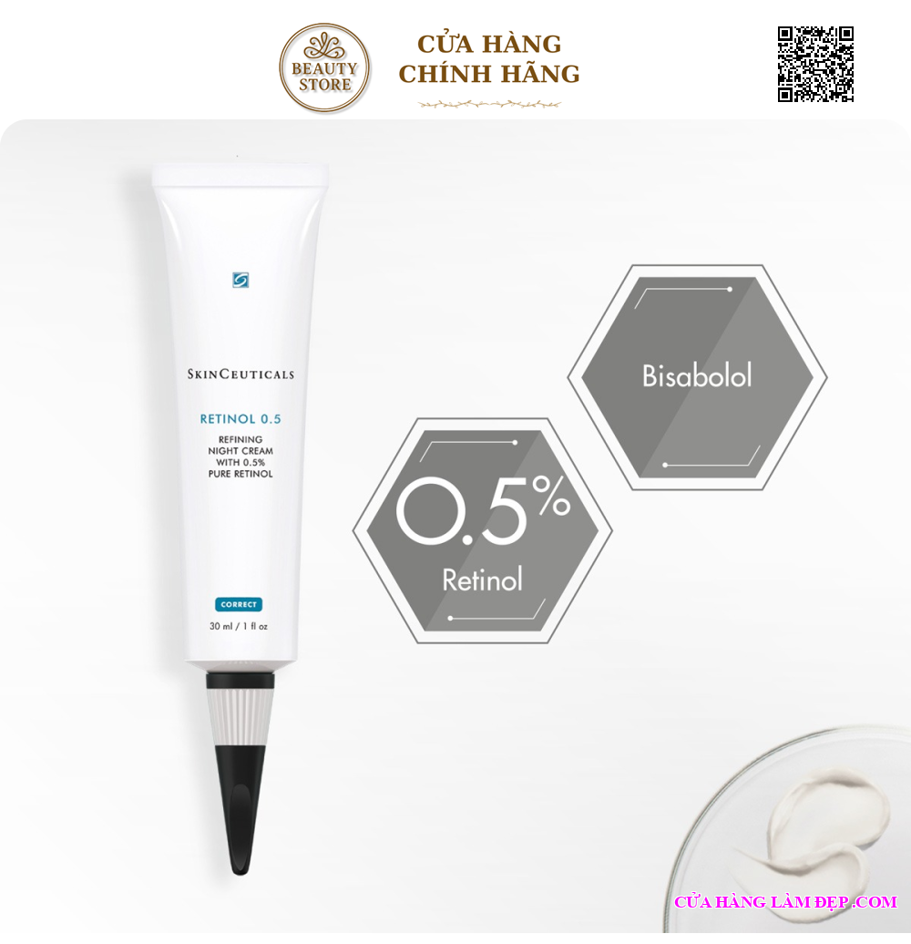 Tinh chất retinol 0.5 có chứa 0.5% retinol nguyên chất, được các nhà khoa học tại SkinCeuticals tối ưu hoá về mặt công thức điều chế và kết cấu sản phẩm để dưỡng chất được thẩm thấu sâu vào da mà vẫn giữ được hiệu quả tốt nhất. Kem dưỡng có khả năng xử lý các vết nhăn, tình trạng da không đều màu và hỗ trợ ngăn ngừa khuyết điểm trên da.