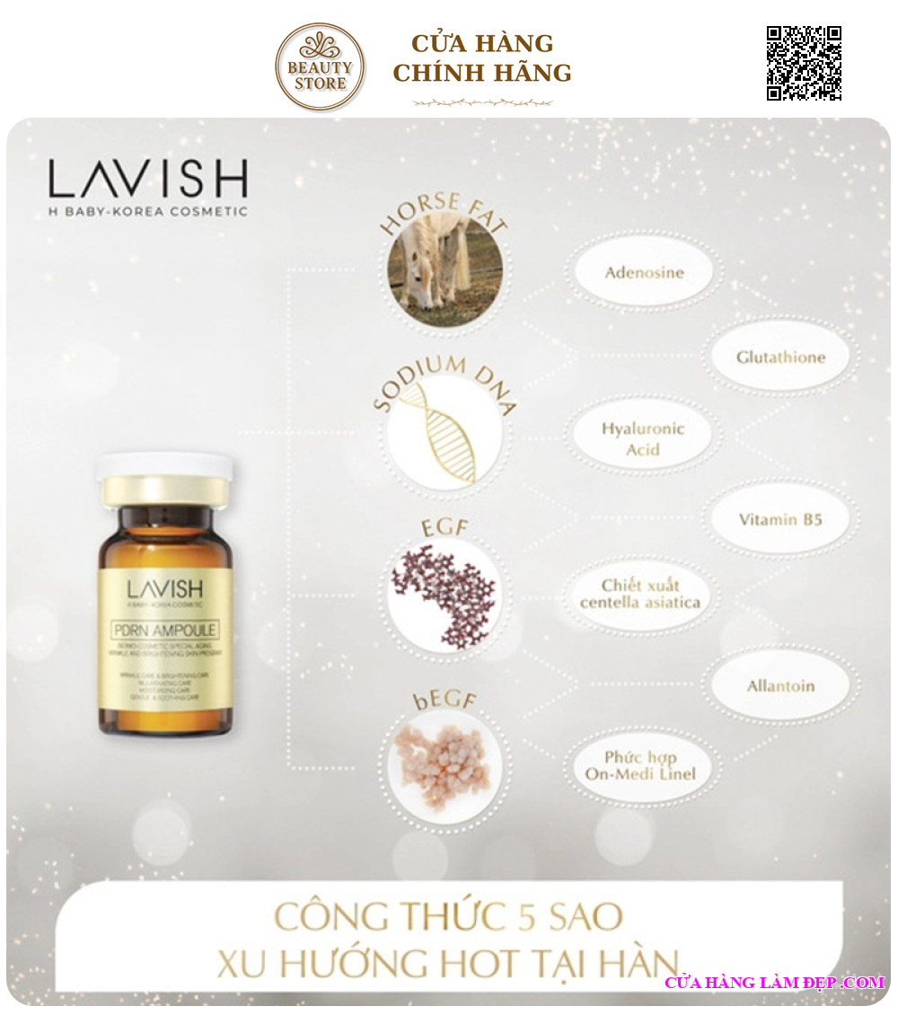 - Giữ vị trí Top 1 trong thực nghiệm trẻ hóa da tại phòng thí nghiệm Hàn Quốc, tinh chất Tinh Chất Tế Bào chiết xuất mỡ ngựa Lavish PDRN Ampoule là liệu pháp "Độc quyền" của Lavish H Baby với khả năng phục hồi cấp tế bào.