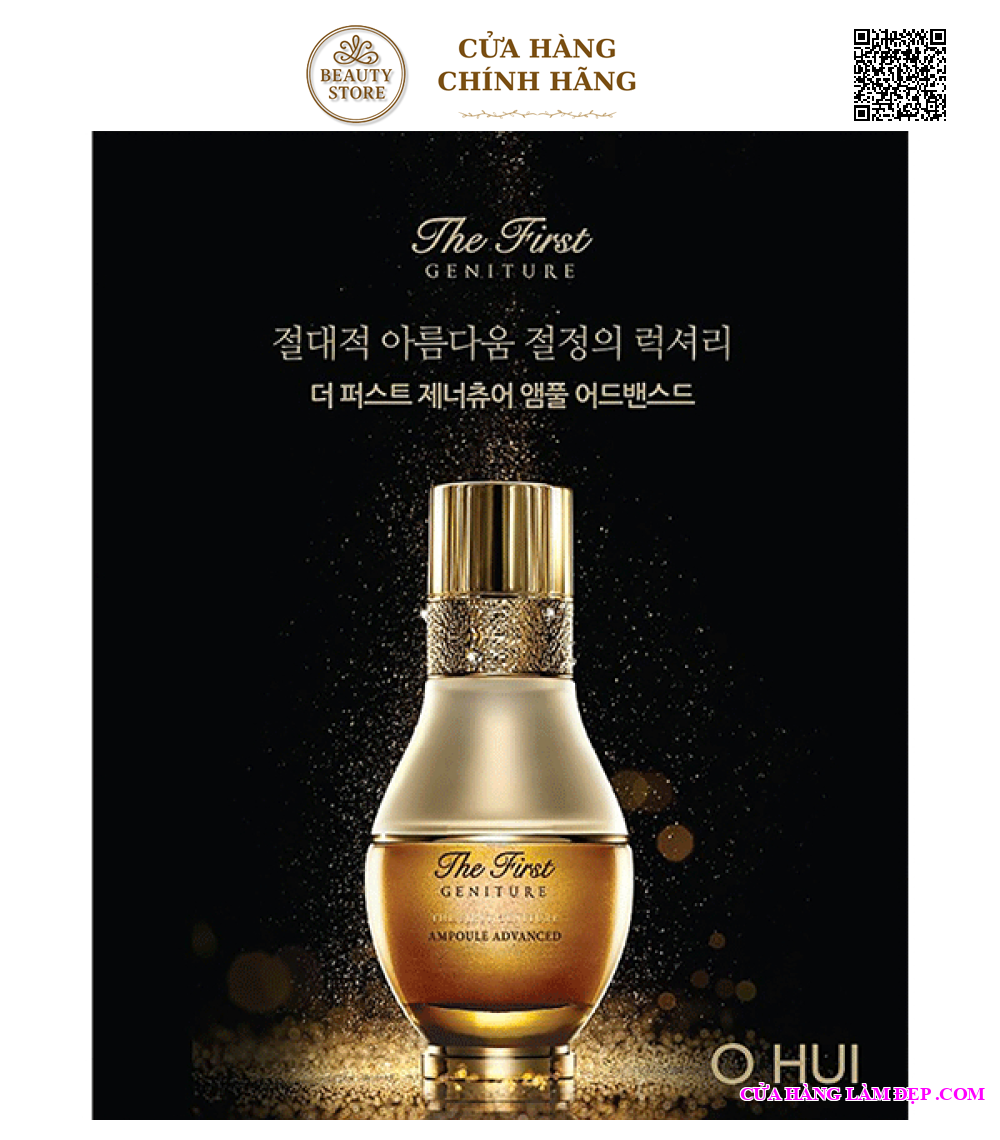 - Tinh Chất Vàng The First Geniture Ampoule Ohui thuộc dòng tái tạo da The First, sử dụng công nghệ nuôi dưỡng tế bào mầm mang lại sự tái sinh làn da khỏe mạnh và trẻ trung do Viện nghiên cứu tế bào mầm CHA cung cấp độc quyền cho LG Household & Healthcare.