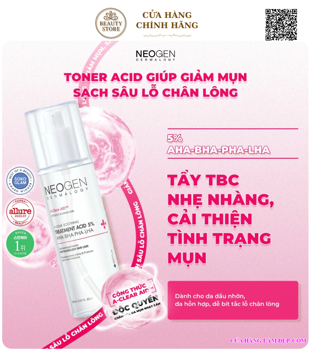 Neogen Dermalogy Treatment Acid Toner Tẩy Tế Bào Chết 5% PHA - AHA - LHA - BHA Dưỡng Sáng Ngừa Mụn 150ml từ Hàn Quốc được khách hàng của Hệ Thống Cửa Hàng Làm Đẹp đánh giá cao.
