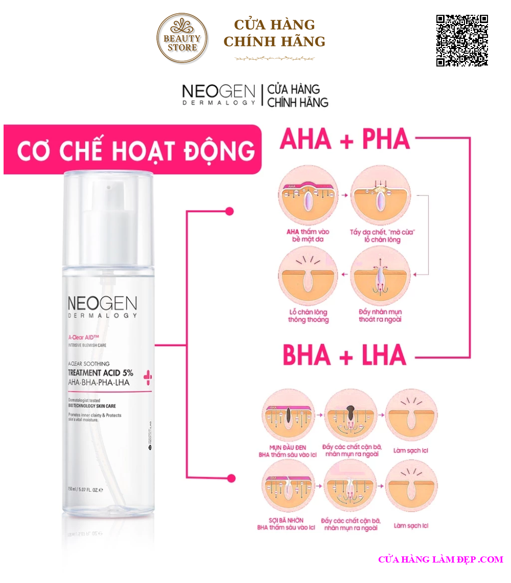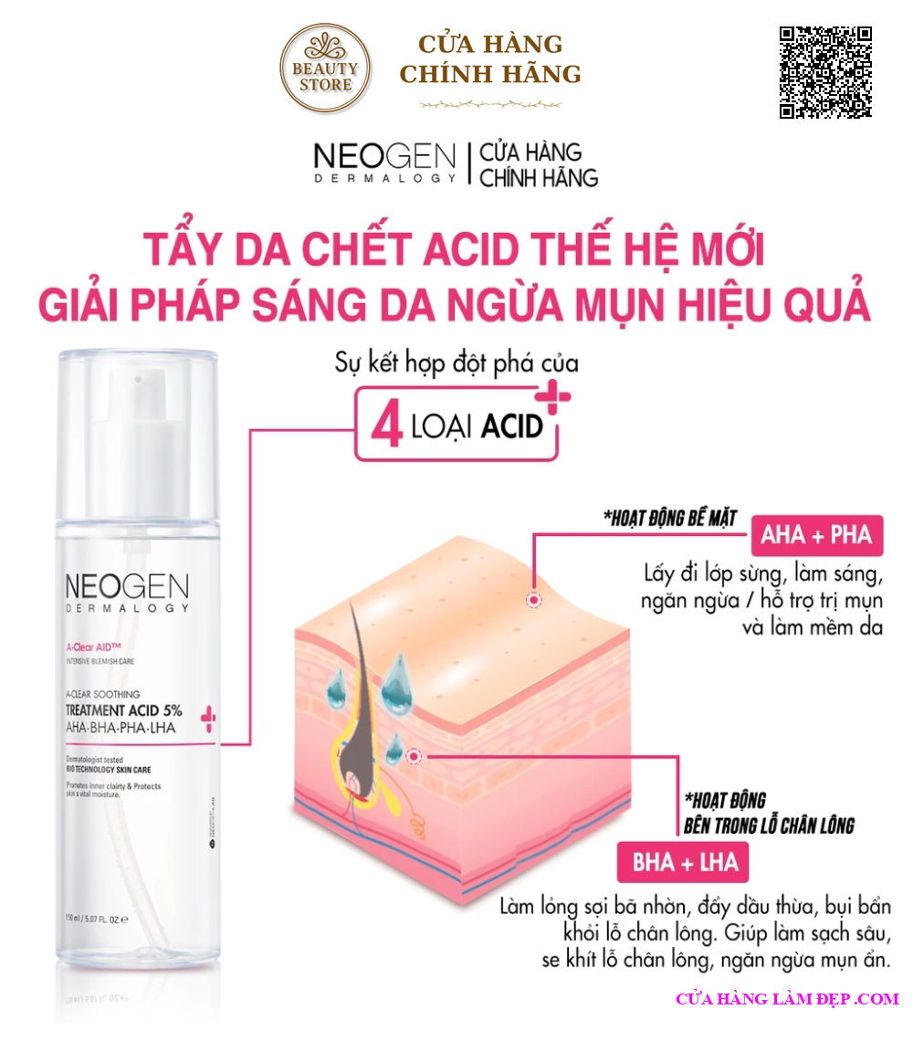 Tại hệ thống Cửa Hàng Làm Đẹp, sản phẩm Neogen Dermalogy Treatment Acid Toner Tẩy Tế Bào Chết 5% PHA - AHA - LHA - BHA Dưỡng Sáng Ngừa Mụn 150ml từ Hàn Quốc có giá 499.000 VNĐ
