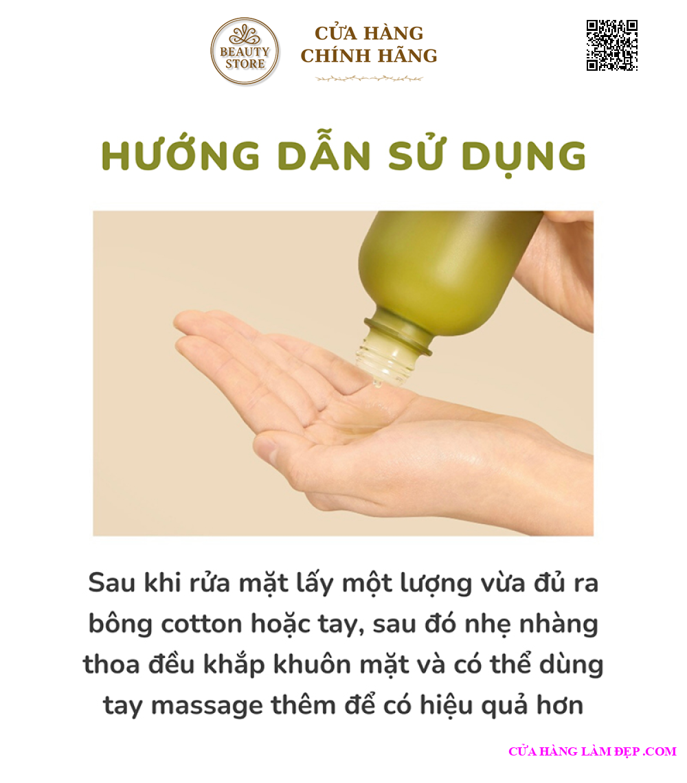 - Sau khi rửa mặt sạch, lấy một lượng vừa đủ ra bông tẩy trang hoặc tay nhẹ nhàng thoa/vỗ để da thấm đều