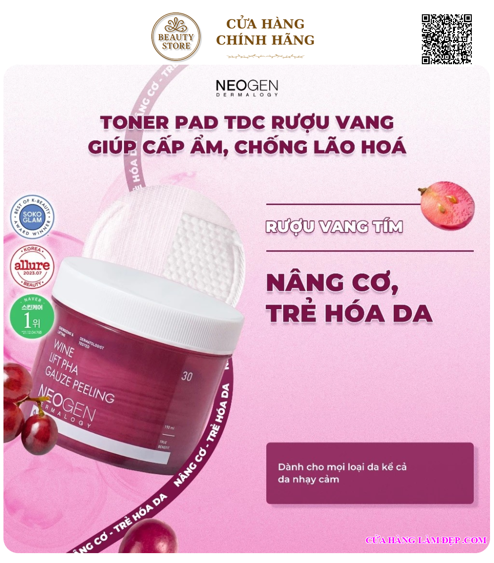 Neogen Dermalogy Wine Lift PHA Gauze Peeling được khách hàng của Hệ Thống Cửa Hàng Làm Đẹp đánh giá cao.