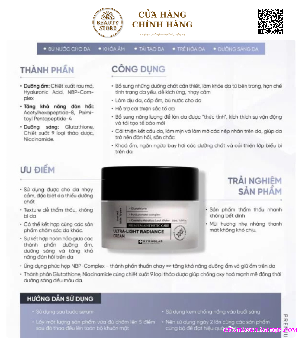 - Bạn có thể tìm mua Ultra-light Radiance Cream Kyung Lab qua website: cuahanglamdep.com