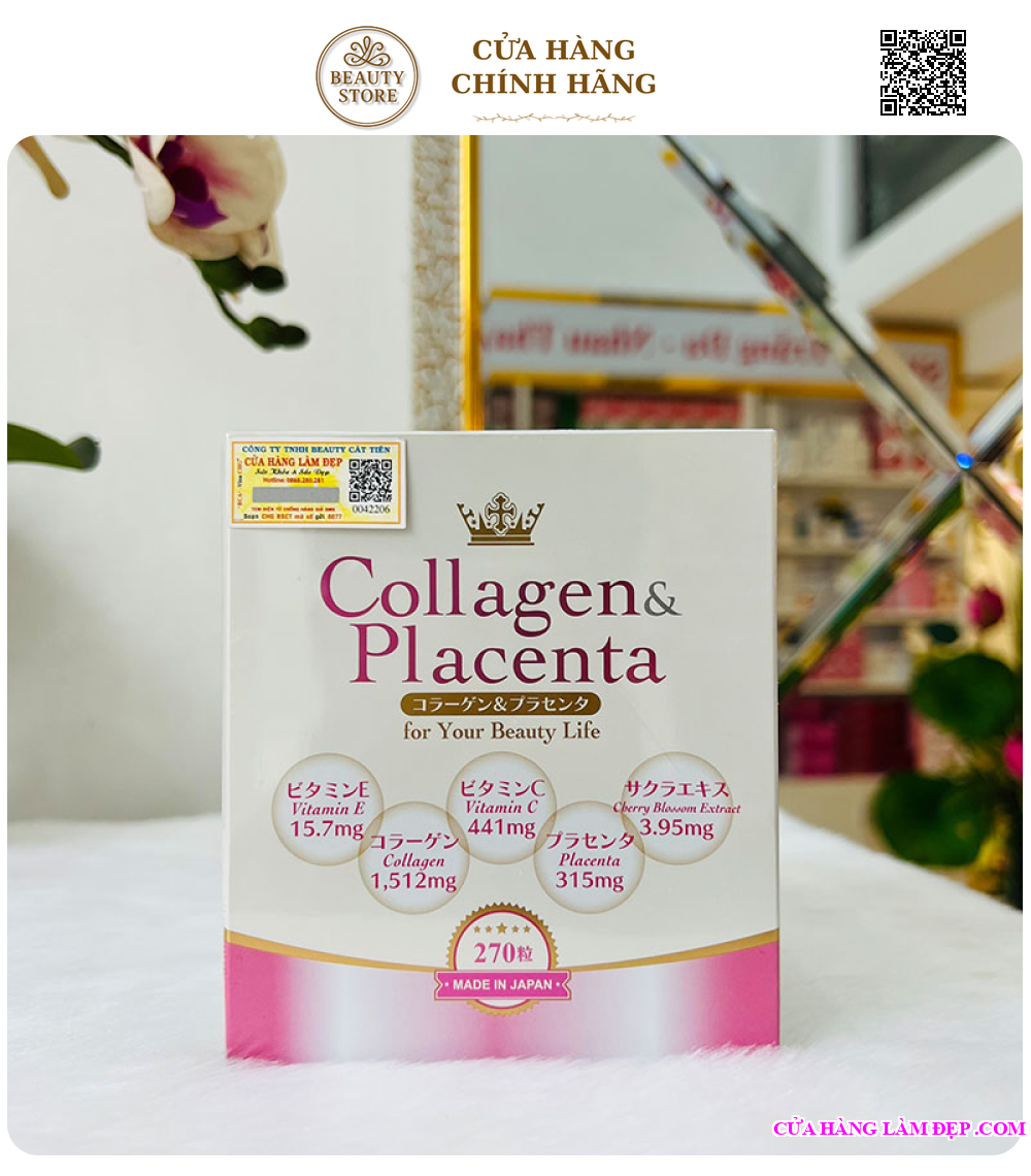 - Tại Hệ thống Cửa hàng làm đẹp, Viên Uống Trắng Da Collagen Placenta Của Nhật 270 Viên có giá 1.590.000 VNĐ
