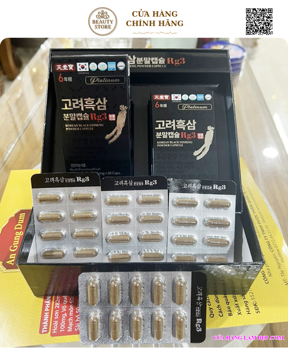 - Bạn có thể tìm mua Viên Hắc Thiên Sâm RG3 Korean Black Ginseng Powder Capsule qua website: cuahanglamdep.com