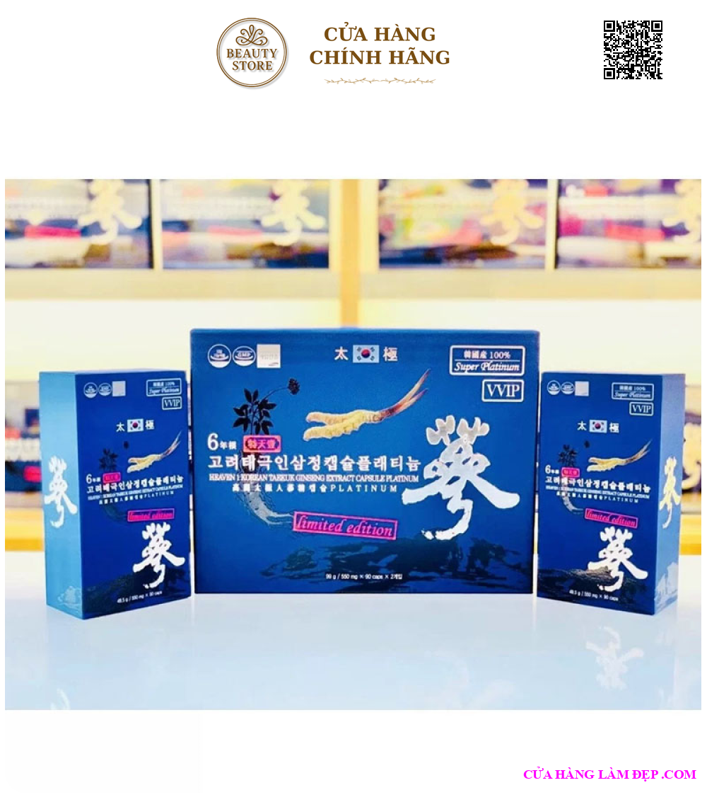 100% tinh chất thiên sâm Hàn Quốc, kết hợp đông trùng hạ thảo và các dược liệu quý hiếm khác có tác dụng tốt cho sức khỏe