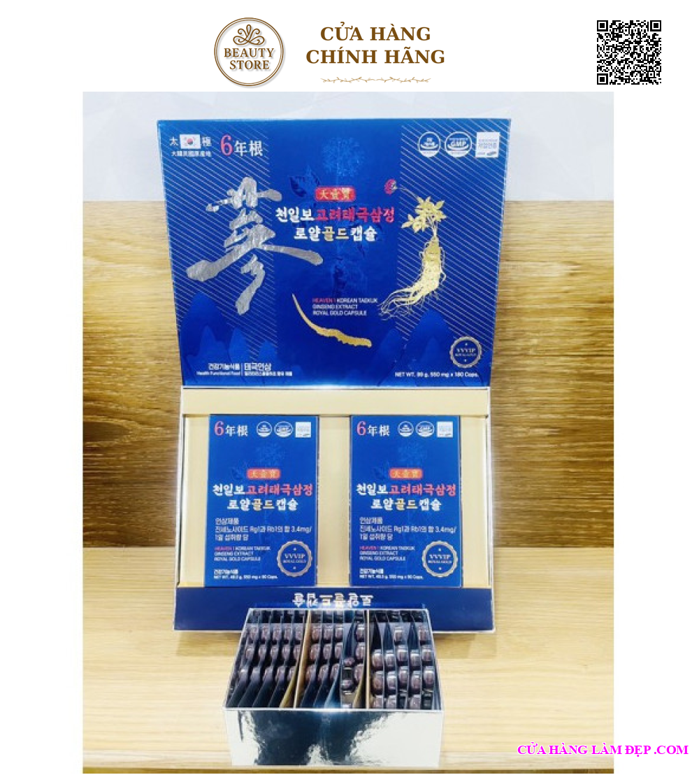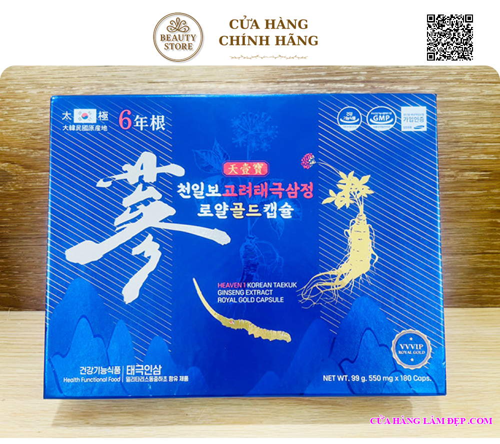 Tại hệ thống cửa hàng làm đẹp, Viên Thiên Sâm Đông Trùng Hạ Thảo Heaven 1 Korean Taekuk Ginseng Extract Royal Gold Capsule có giá: 5.500.000 VND