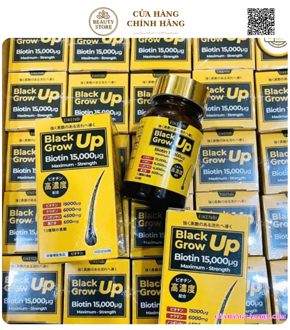 Viên Uống Mọc Tóc & Đen Tóc Black Grow Up Maximum Biotin được khách hàng của Hệ Thống Cửa Hàng Làm Đẹp đánh giá cao.