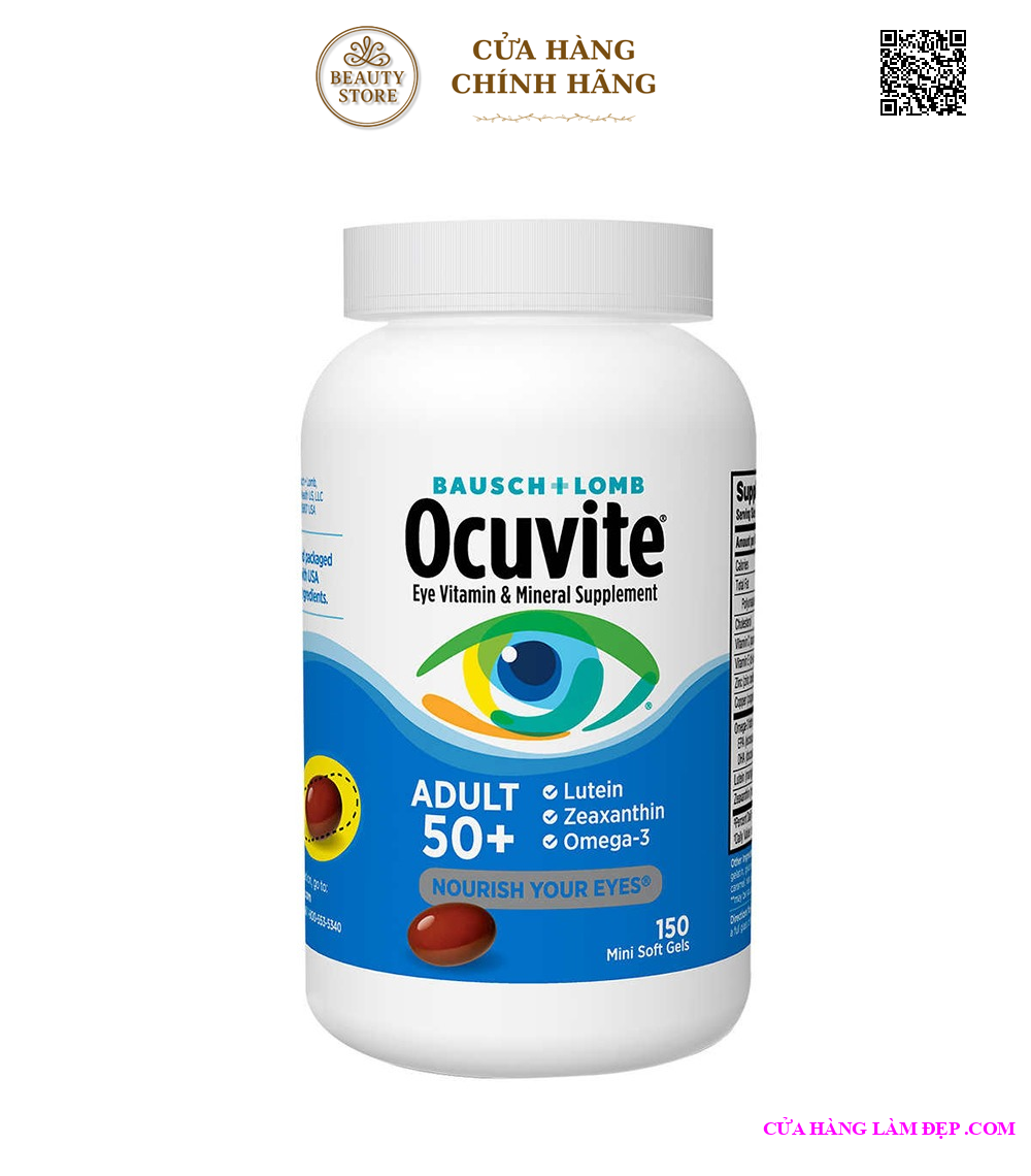 Viên uống bổ mắt Ocuvite Adults 50+ 150 vien chứa công thức đặc biệt, cung cấp vi chất và dưỡng chất thiết yếu bảo vệ và nuôi dưỡng võng mạc, điểm vàng, hạn chế tối đa sự suy giảm thị lực do tuổi tác. Sản phẩm đã nhận được nhiều phản hồi tích cực từ những người sử dụng và hiện nay đang được phổ biến tại nhiều quốc gia trên Thế giới.
