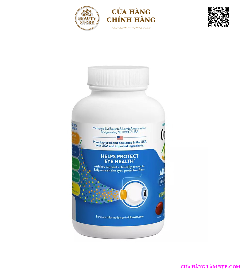 - bổ mắt Ocuvite của Mỹ là sản phẩm của Bausch + Lomb đã được nghiên cứu kỹ lưỡng bởi các chuyên gia hàng đầu. Sản phẩm chứa công thức độc đáo, tổng hợp những dưỡng chất tốt nhất cho đôi mắt của bạn.