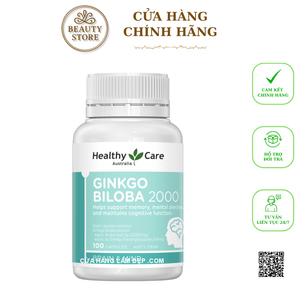 bổ não Healthy Care Ginkgo Biloba 2000mg được chiết xuất từ cây bạch quả, đã được nghiên cứu và chứng minh là có chứa dưỡng chất đặc biệt cần thiết để duy trì và nuôi dưỡng bộ não hoạt động tốt*. Đặc biệt, nó giúp tăng tuần hoàn máu não, cải thiện chứng suy giảm trí nhớ, lú lẫn ở người già, giảm stress cho những người chịu áp lực công việc, giúp an thần, ngủ ngon, giảm tình trạng tê cứng chân tay cổ vai gáy do tuần hoàn máu kém,...