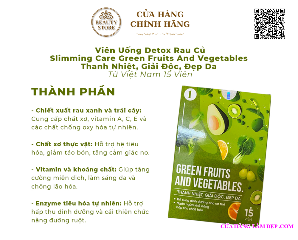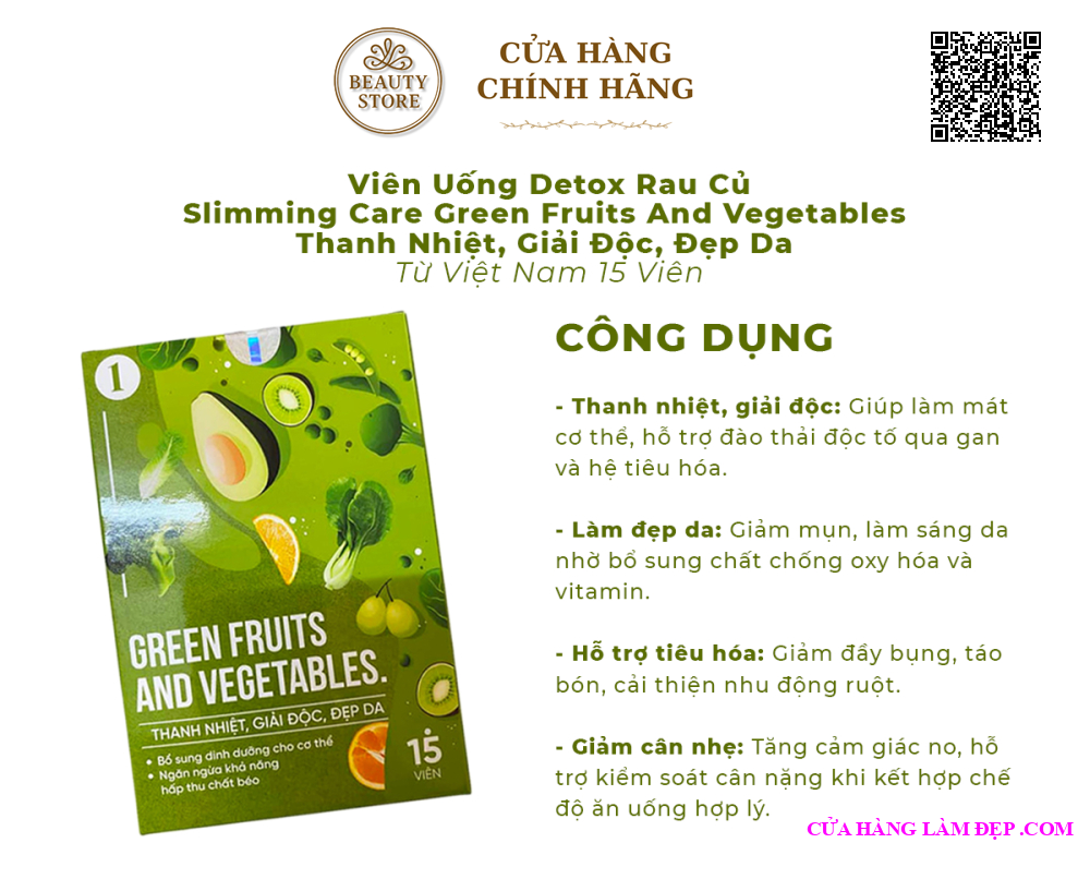 Viên Uống Detox Rau Củ Slimming Care Green Fruits And Vegetables Thanh Nhiệt, Giải Độc, Đẹp Da Từ Việt Nam 15 Viên được khách hàng của Hệ Thống Cửa Hàng Làm Đẹp đánh giá cao.