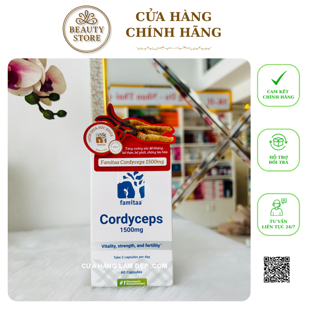 Tại Hệ Thống Cửa Hàng Làm Đẹp, Viên Uống Đông Trùng Hạ Thảo Famitaa Cordyceps 1500mg có giá: 500.000 VND